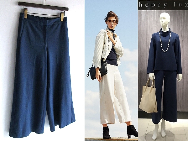 セオリーリュクスのパンツ「ELMA」。ファブリックは圧縮ウール生地「STAGE」。フロントはジッパーフライ、バックエストにゴム入り。ワイドクロップドのデザインです。上質な素材使いと綺麗なシルエットで、様々なコーディネートにお使い頂ける一着です。