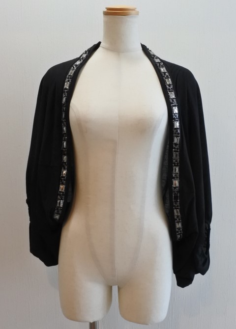 | LIZA リザ カーディガン オープンフロント ボレロ ドルマンスリーブ 装飾 Mサイズ ブラック 夏 arimyk a201hg1228 | |||