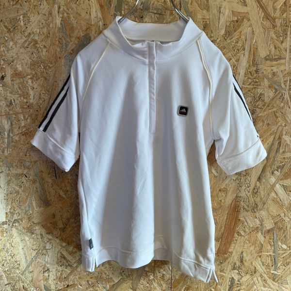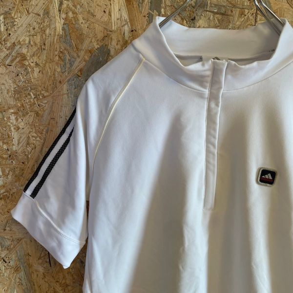 [KWT4685] adidas ハーフジップ半袖Tシャツ レディース ホワイト L ポス