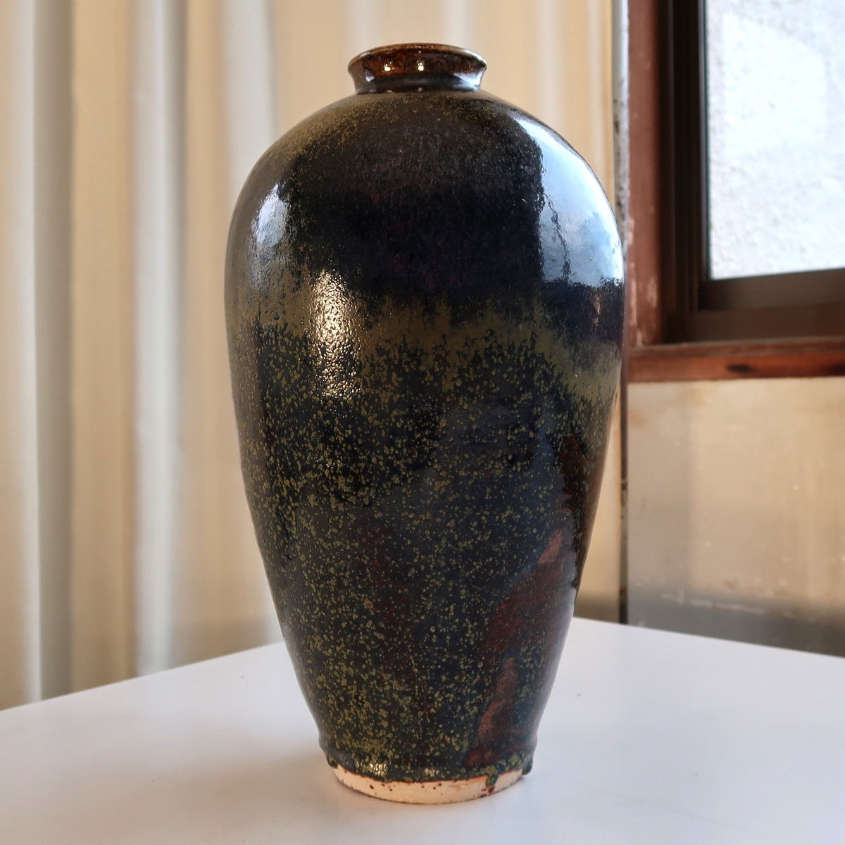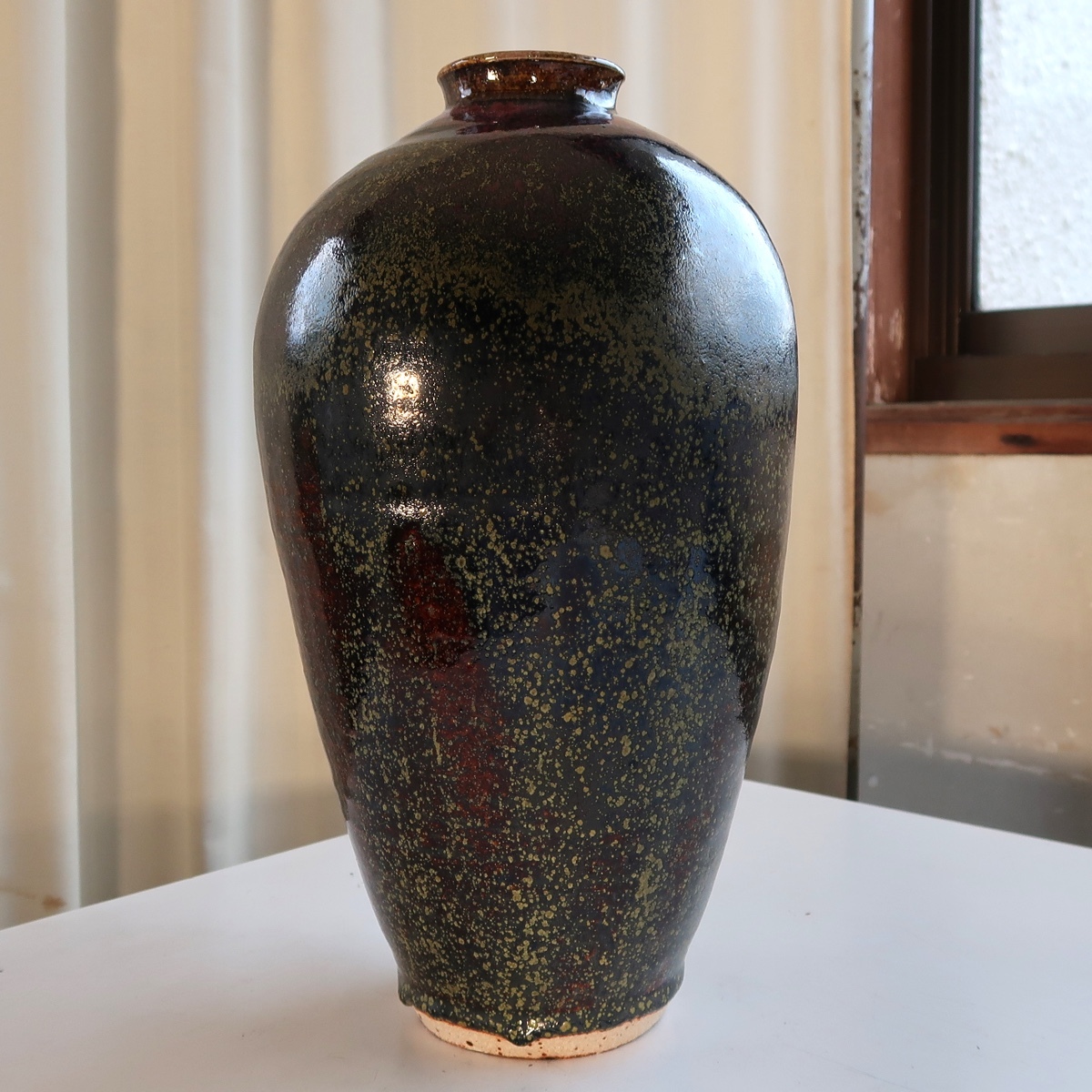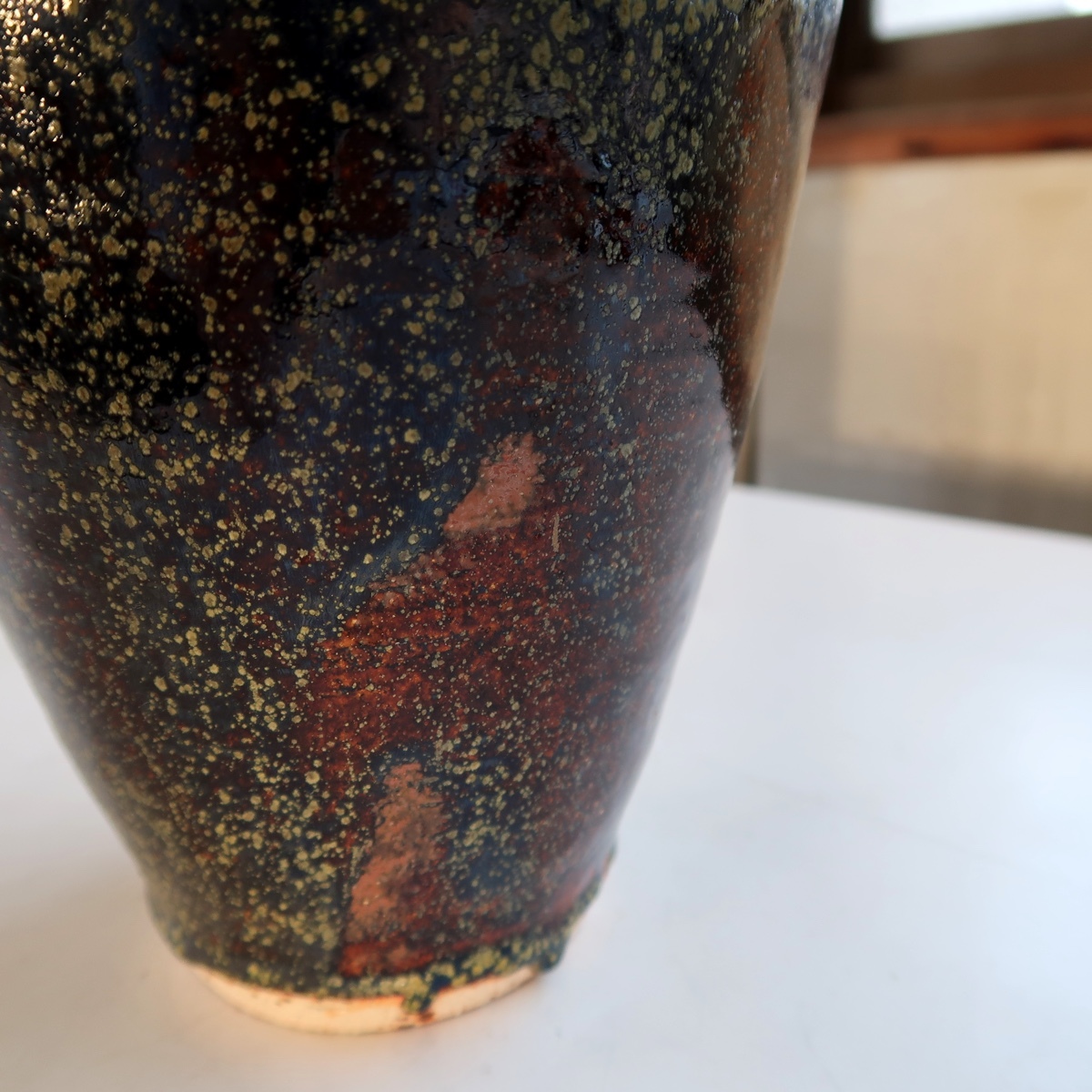 自然釉 花瓶 花入 花生け 高さ31センチ 印ありです。