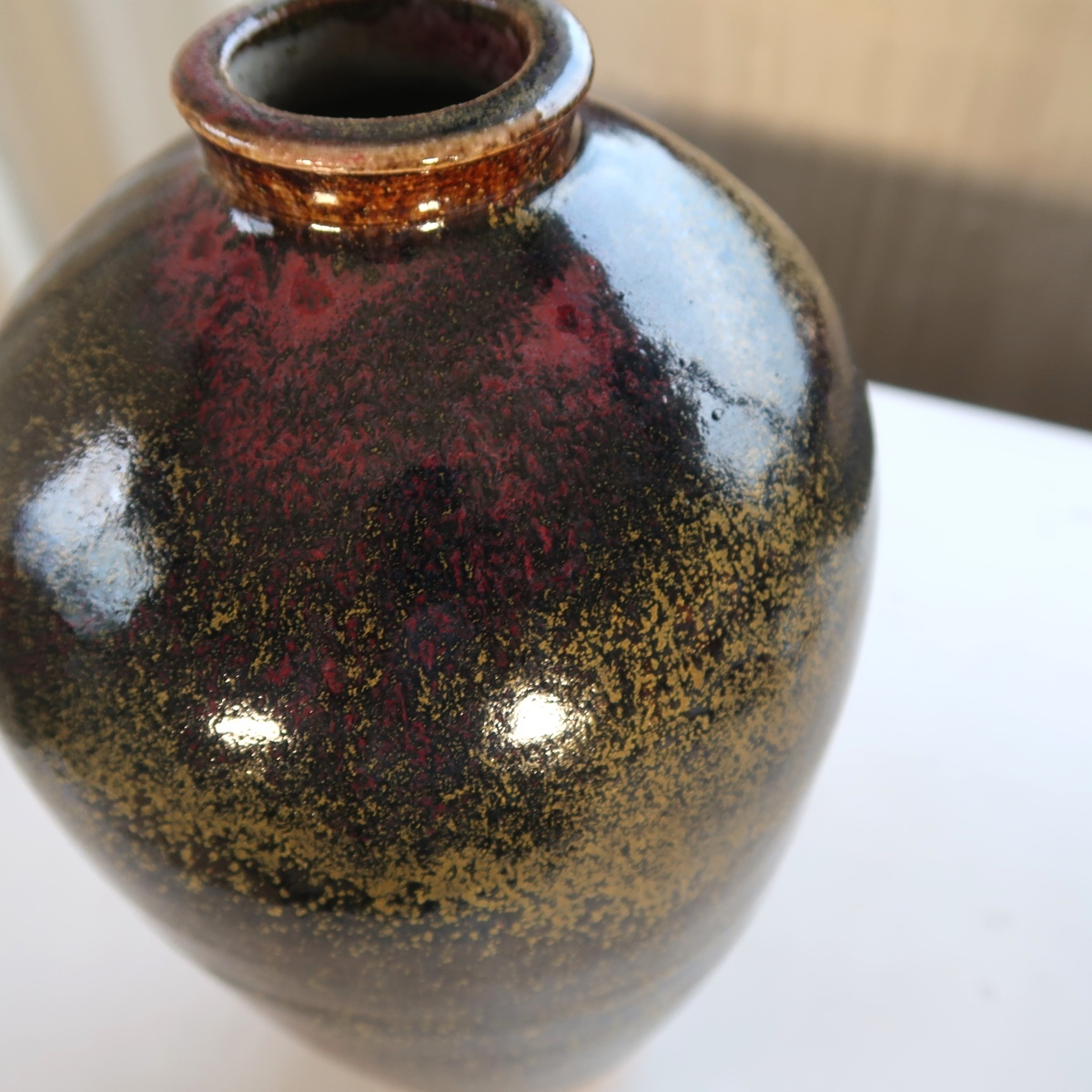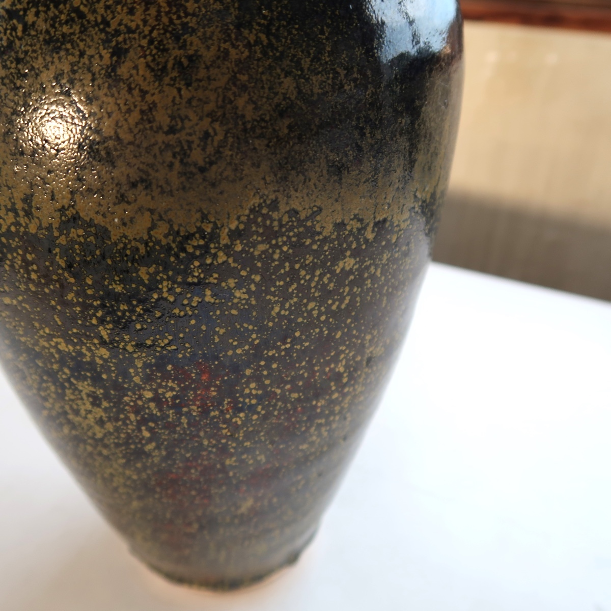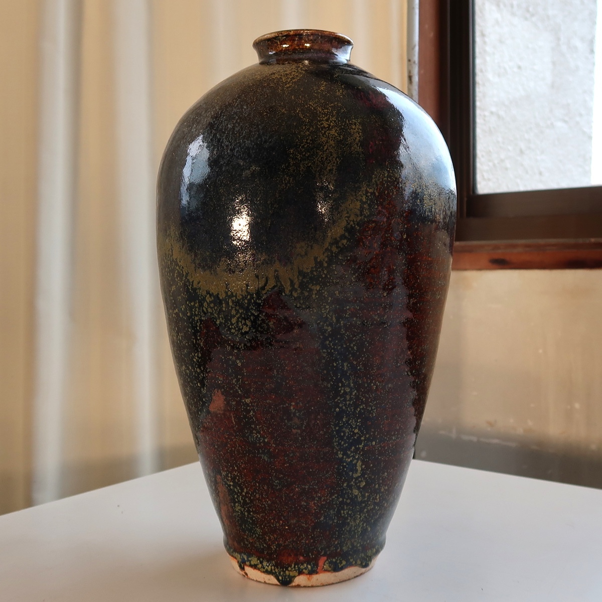 自然釉 花瓶 花入 花生け 高さ31センチ 印ありです。