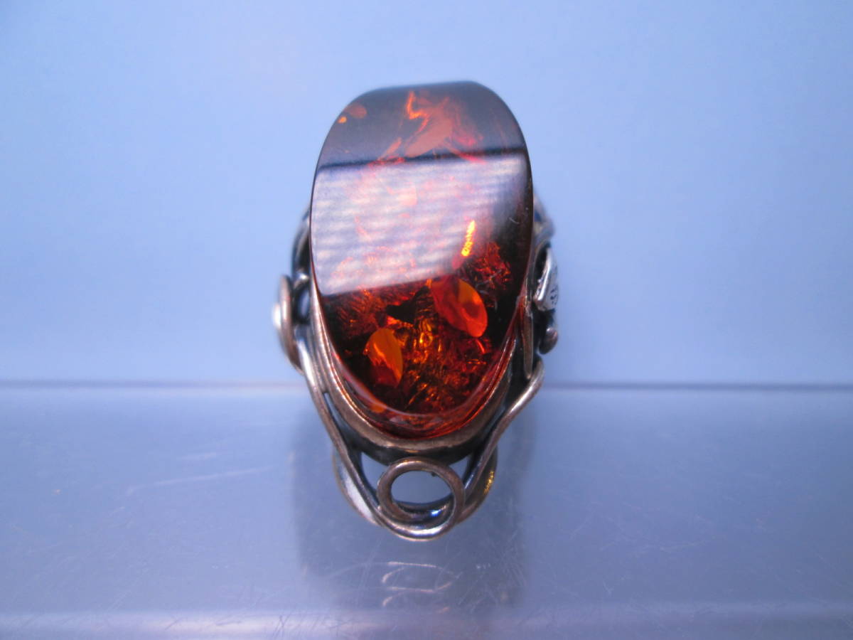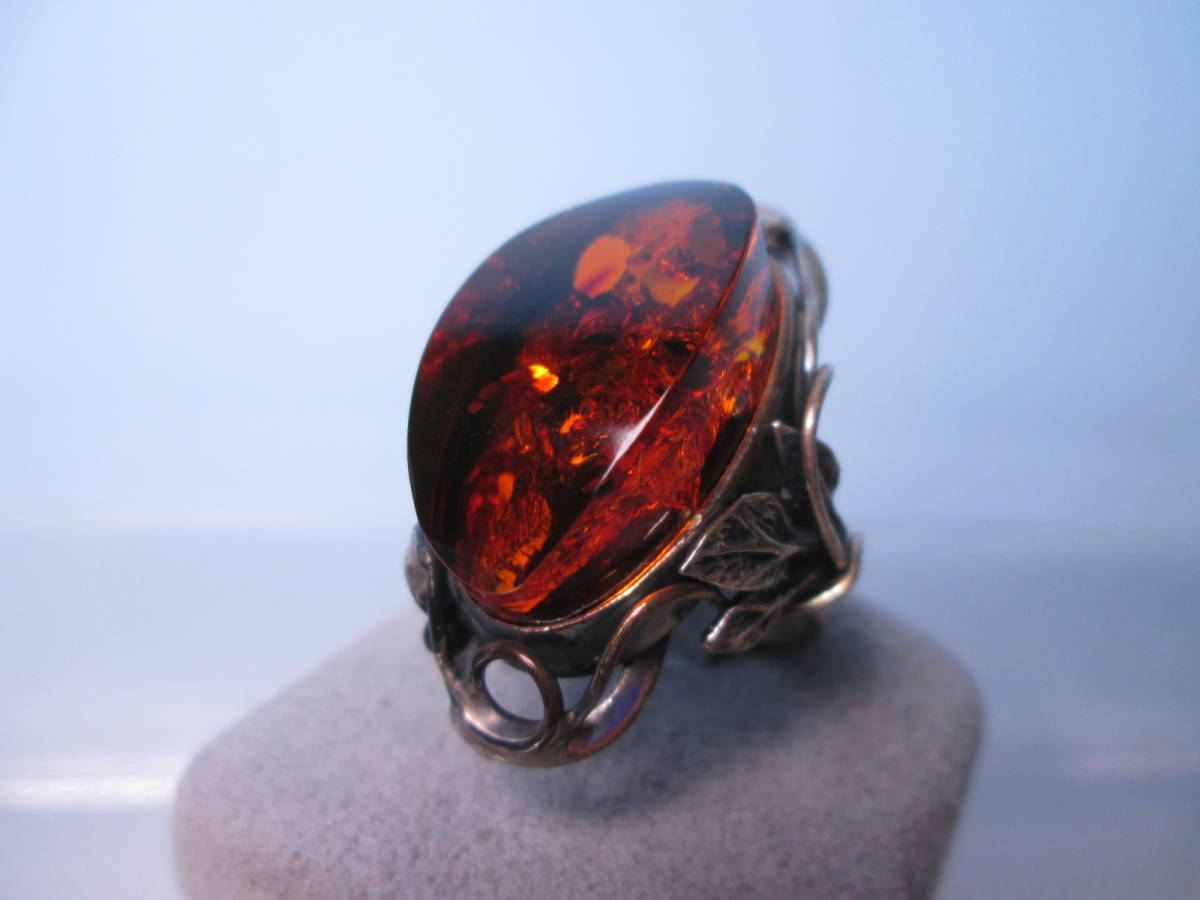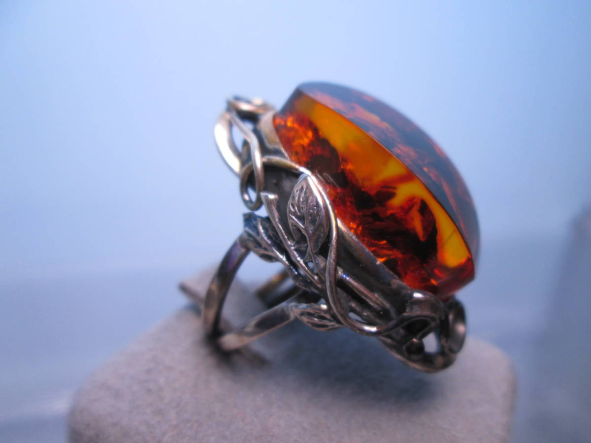 ☆SILVER 銀彫金細工 天然琥珀のデザインリング 12,13g 12号 ケース付