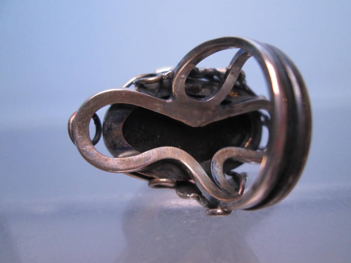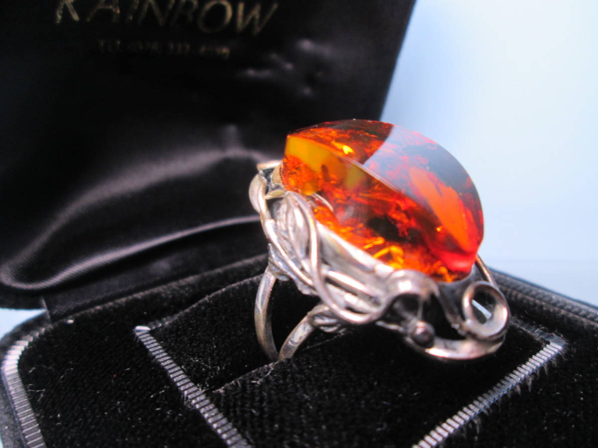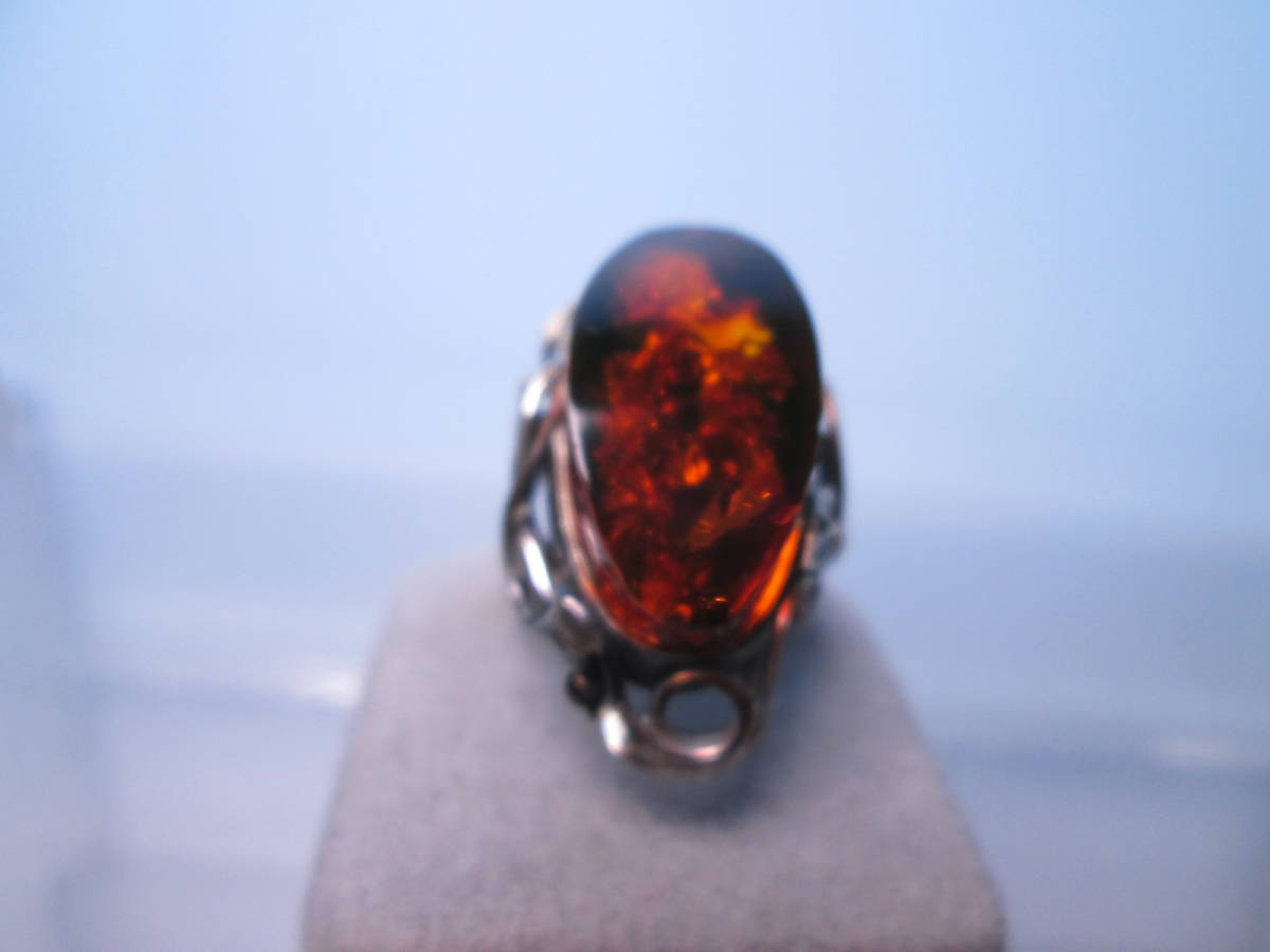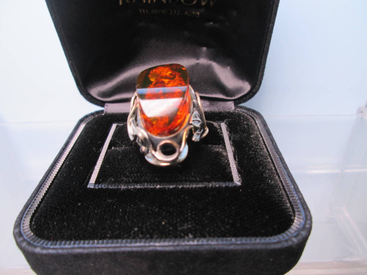 ☆SILVER 銀彫金細工 天然琥珀のデザインリング 12,13g 12号 ケース付