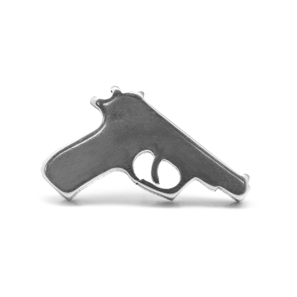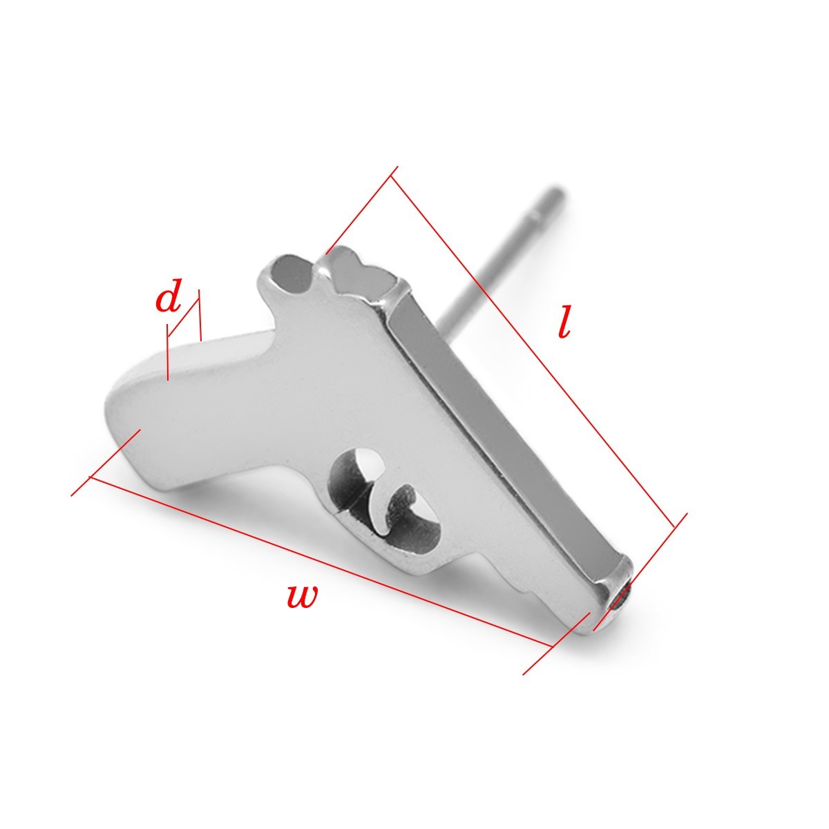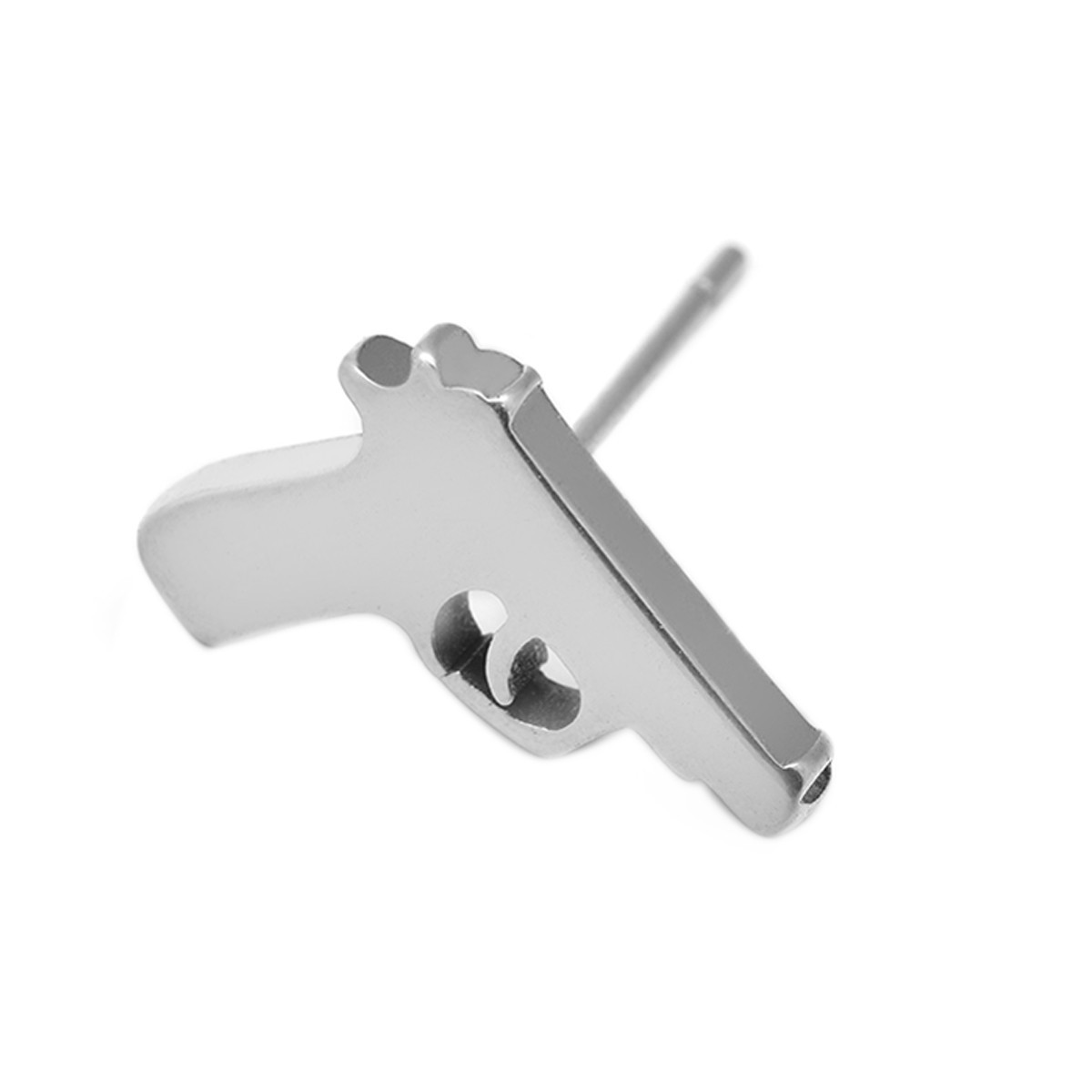 ガン(銃)をモチーフにしたカッコいいステンレスのピアスです。※当商品は1個づつ販売の「バラ売り商品」です、ペアではございません。 |