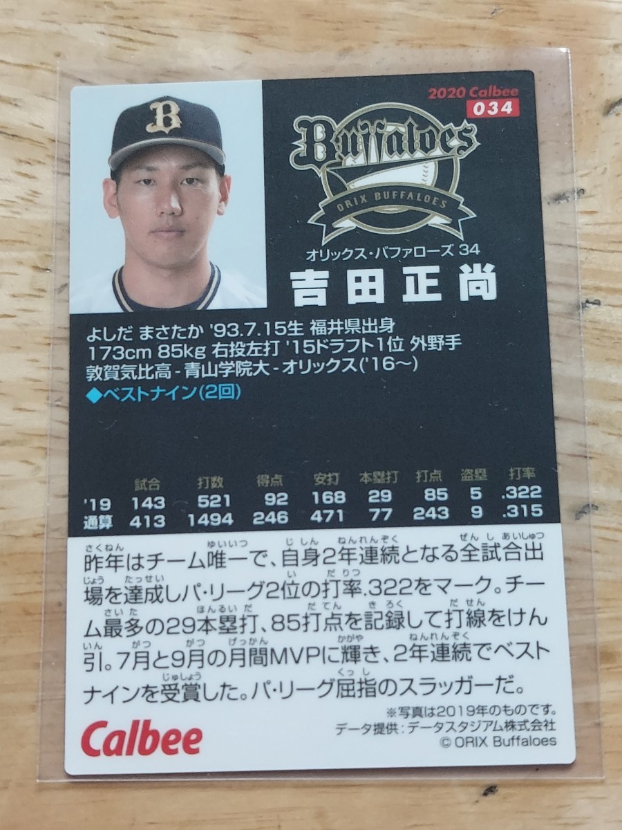 カルビー プロ野球カード2020 吉田正尚 オリックスバファローズ