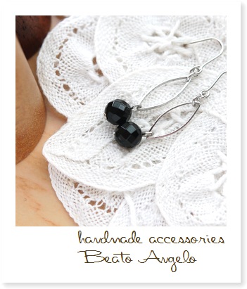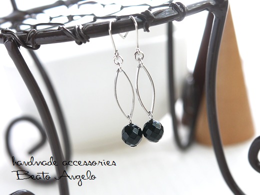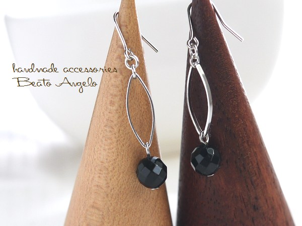 天然石ブラックオニキスとマーキスのピアス(p-131)S