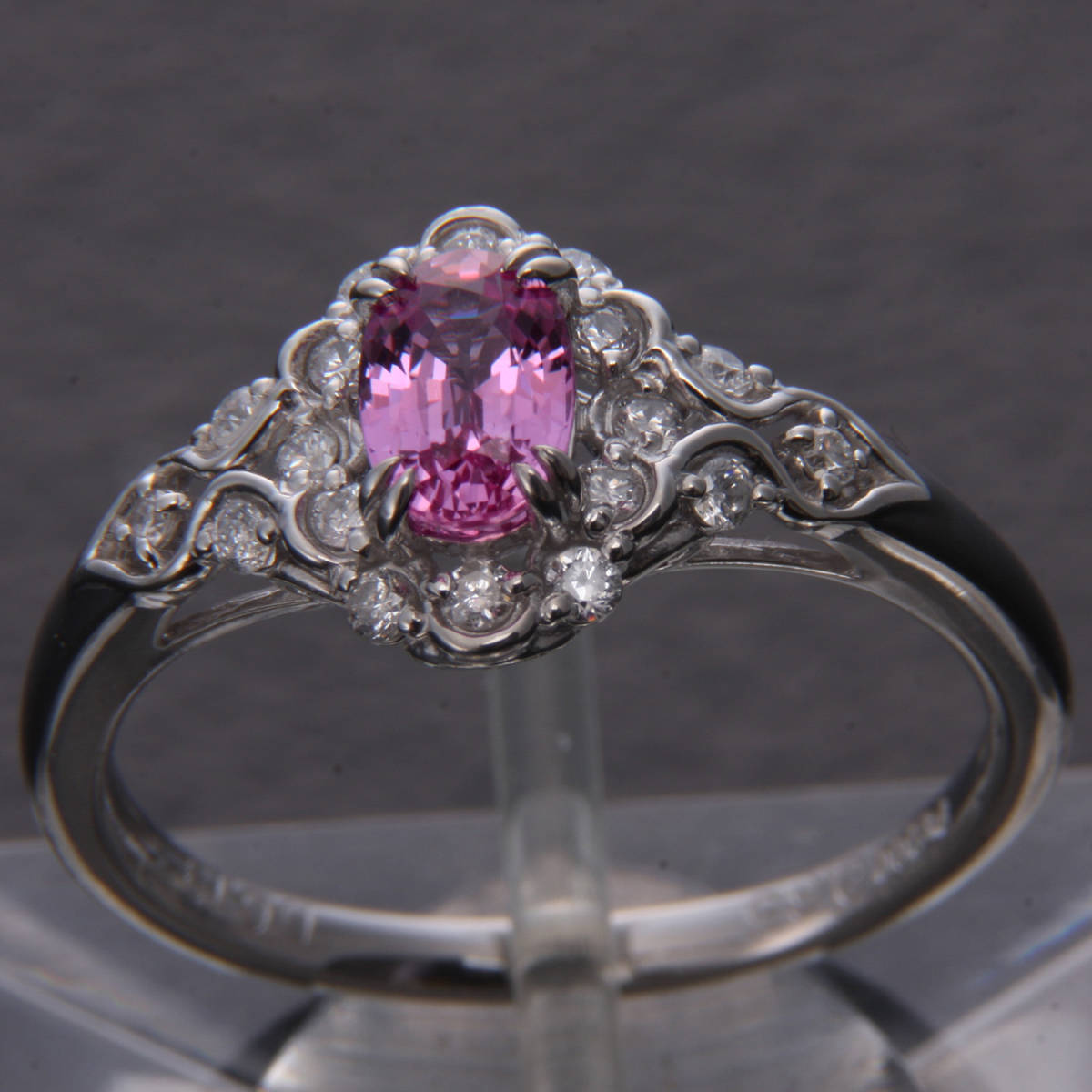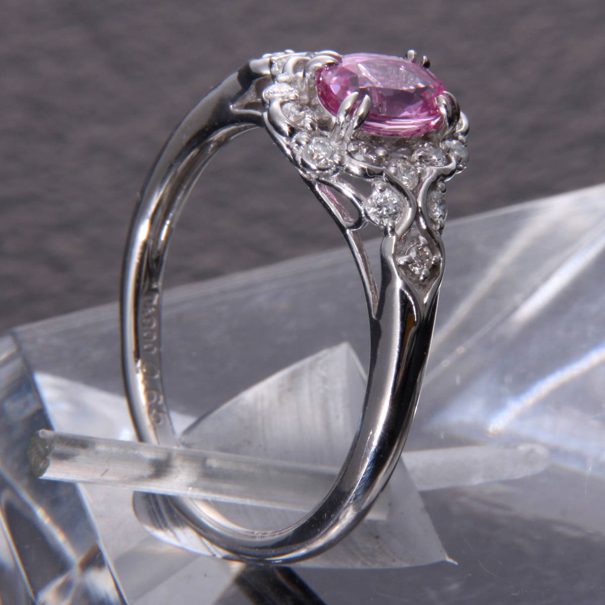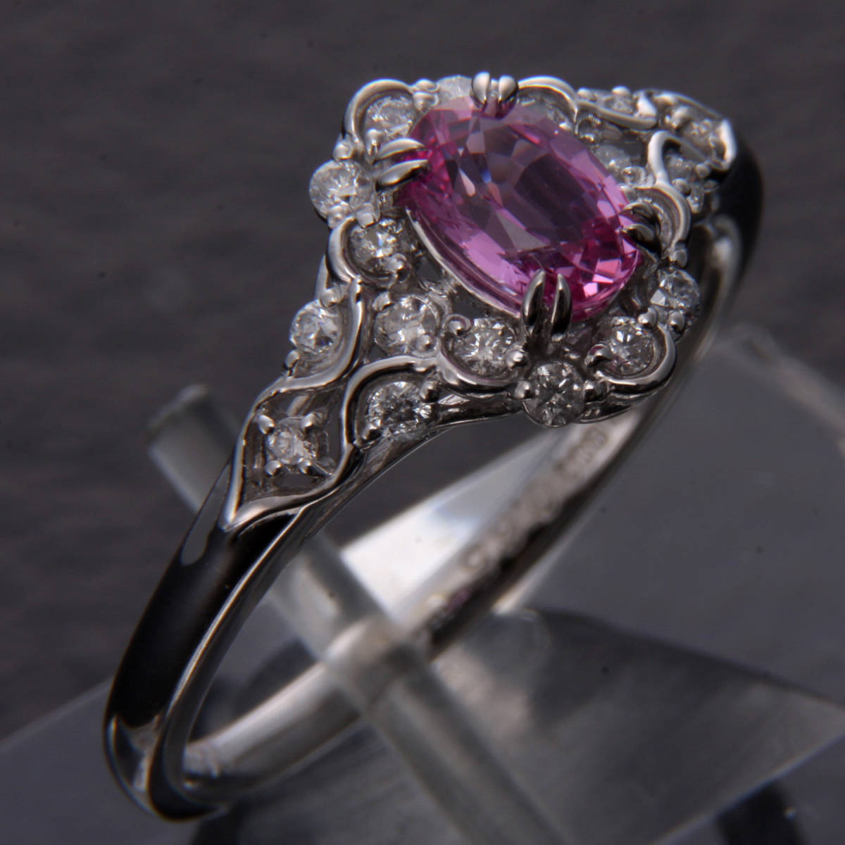 Pt900製、ピンクサファイアとダイアモンドの13号リングです。