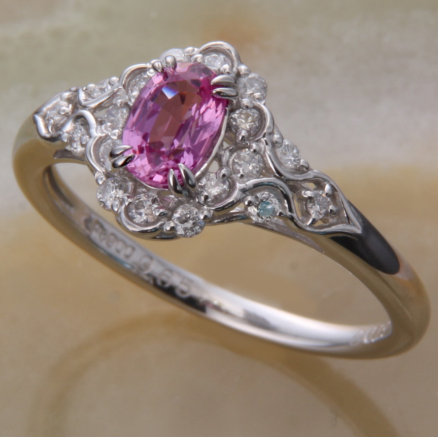 ピンクサファイアは、少し青みがかったような可愛らしい色合いです。