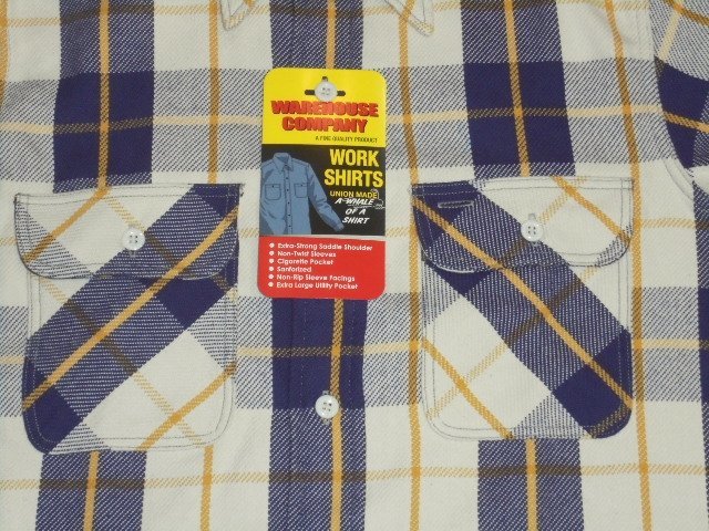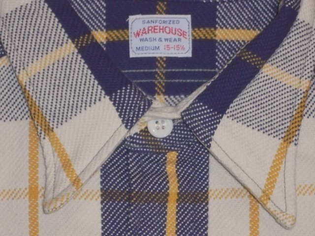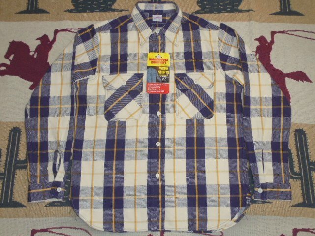 23 ウエアハウス 3104 B柄 ネイビー M ネルシャツ ノンウォッシュ