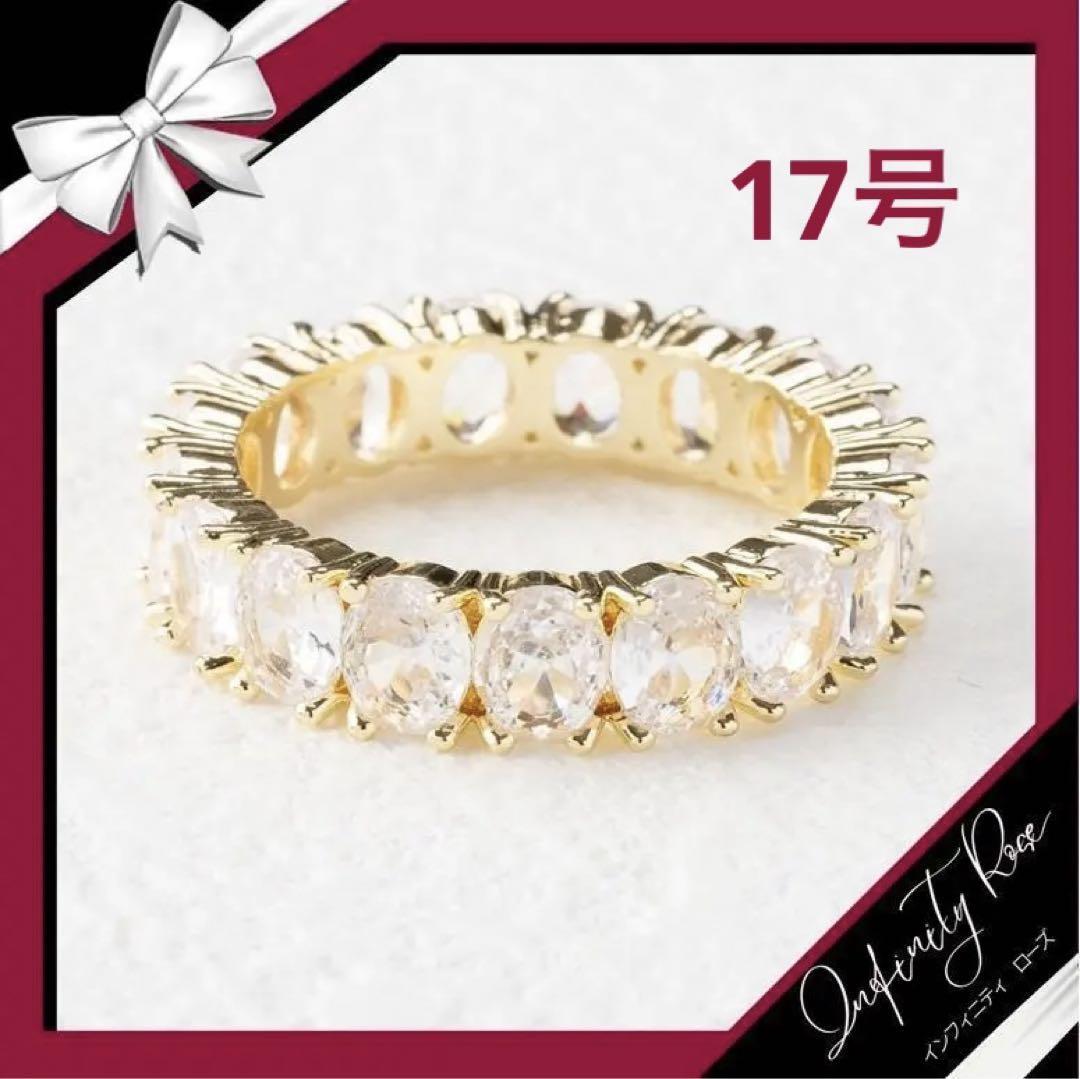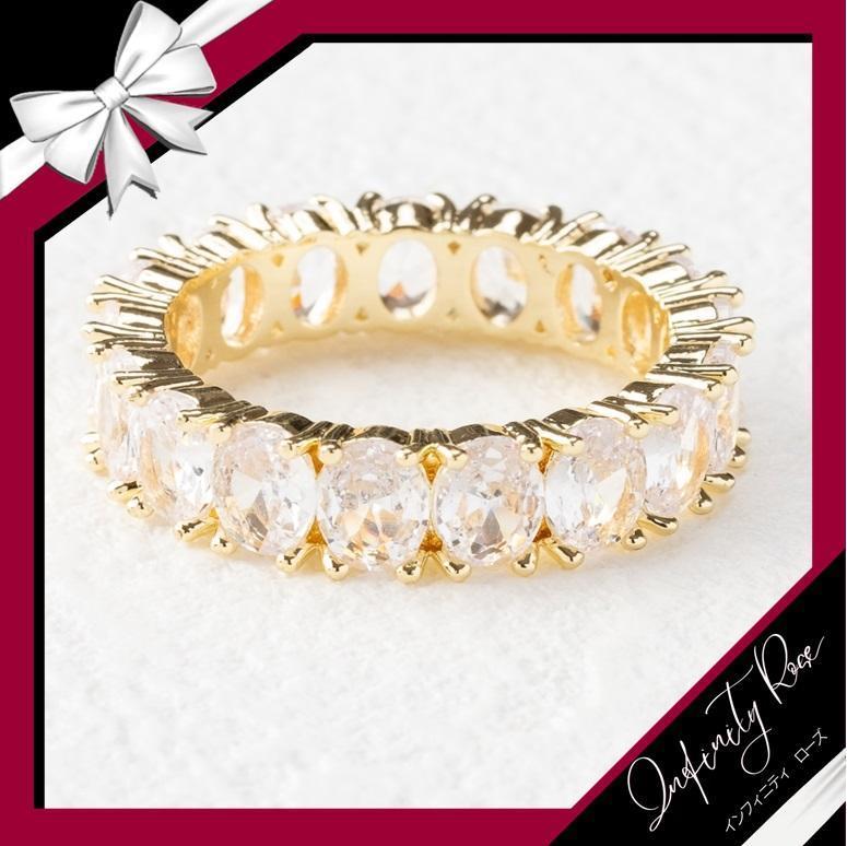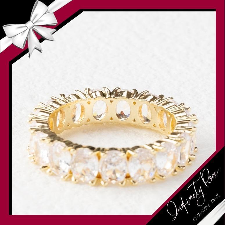 (R021G)17号 ゴールドオーバル高価爪留め仕様クリスタルリング  指輪