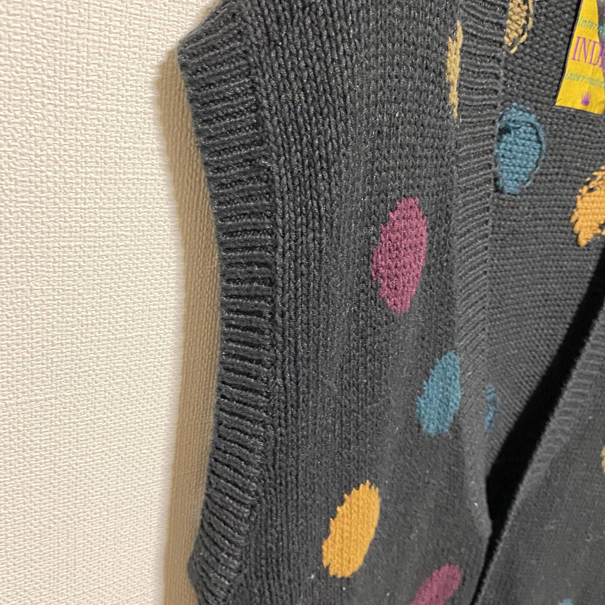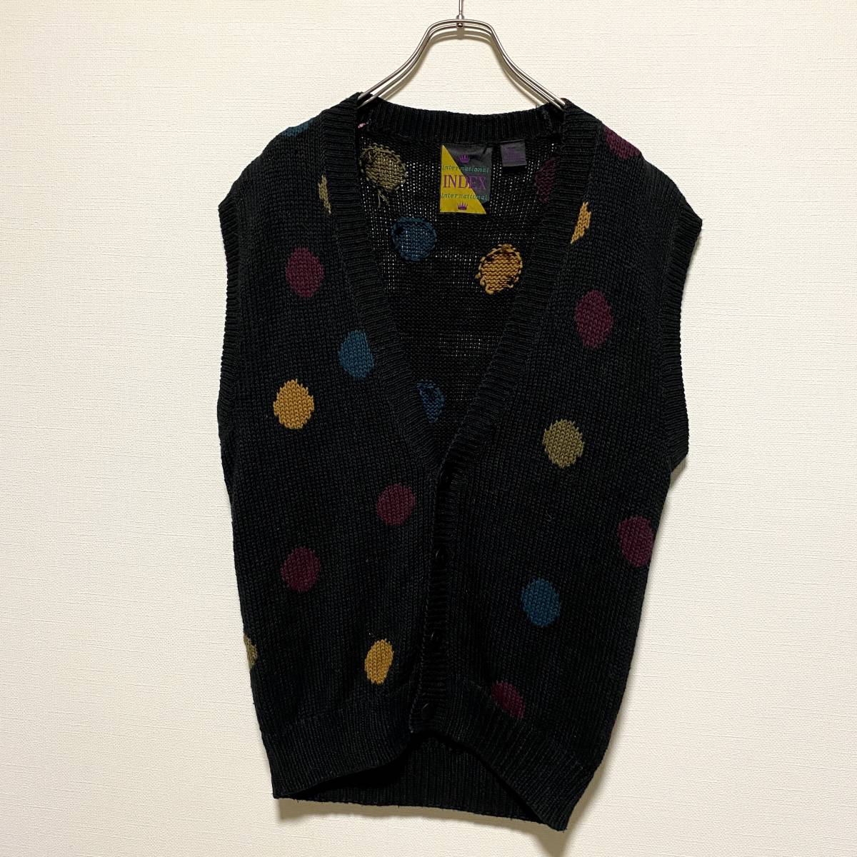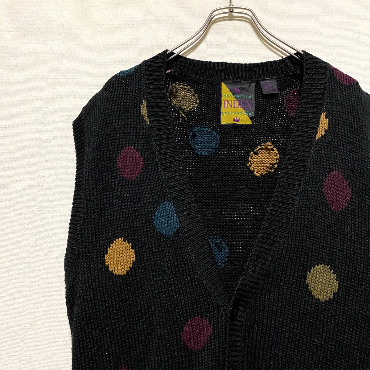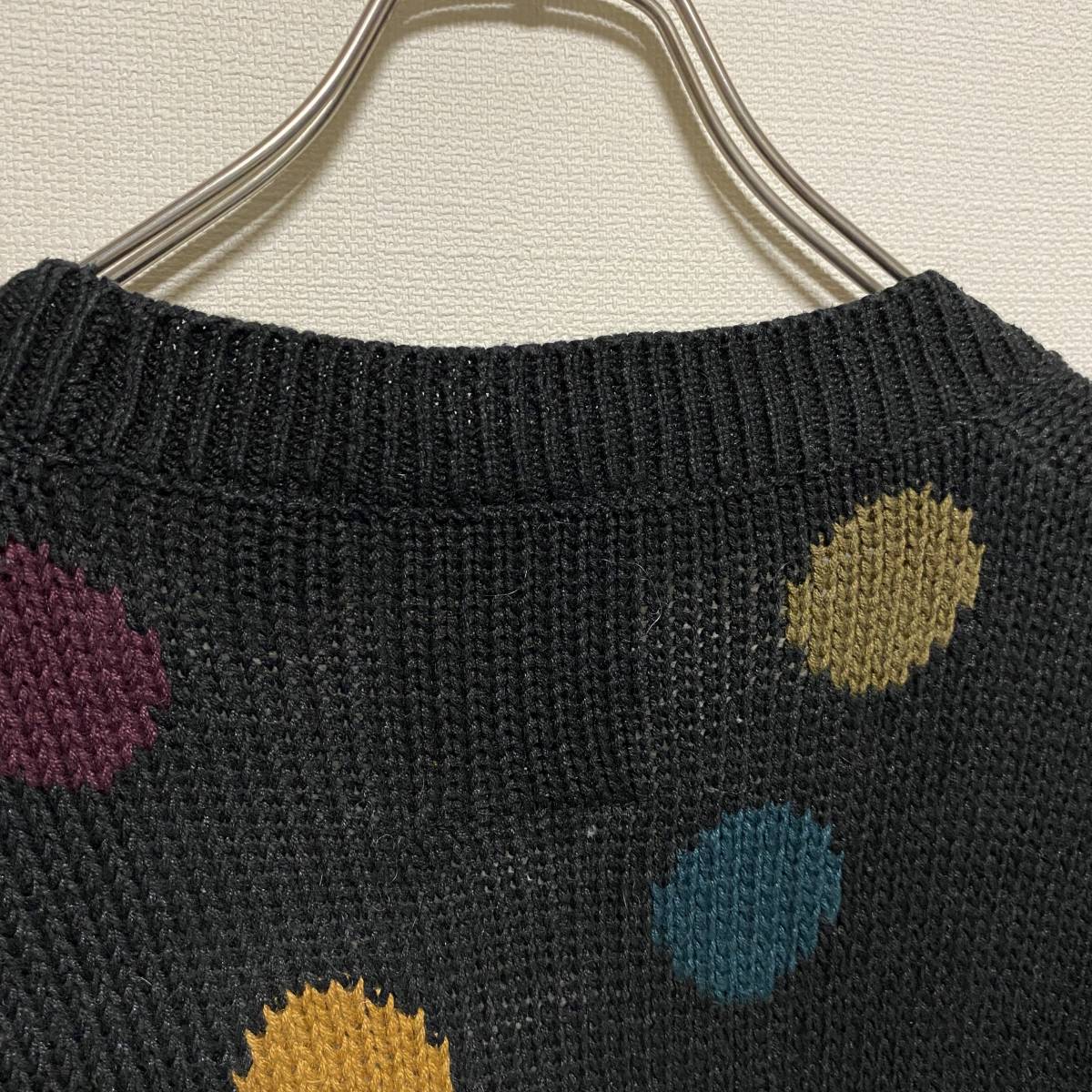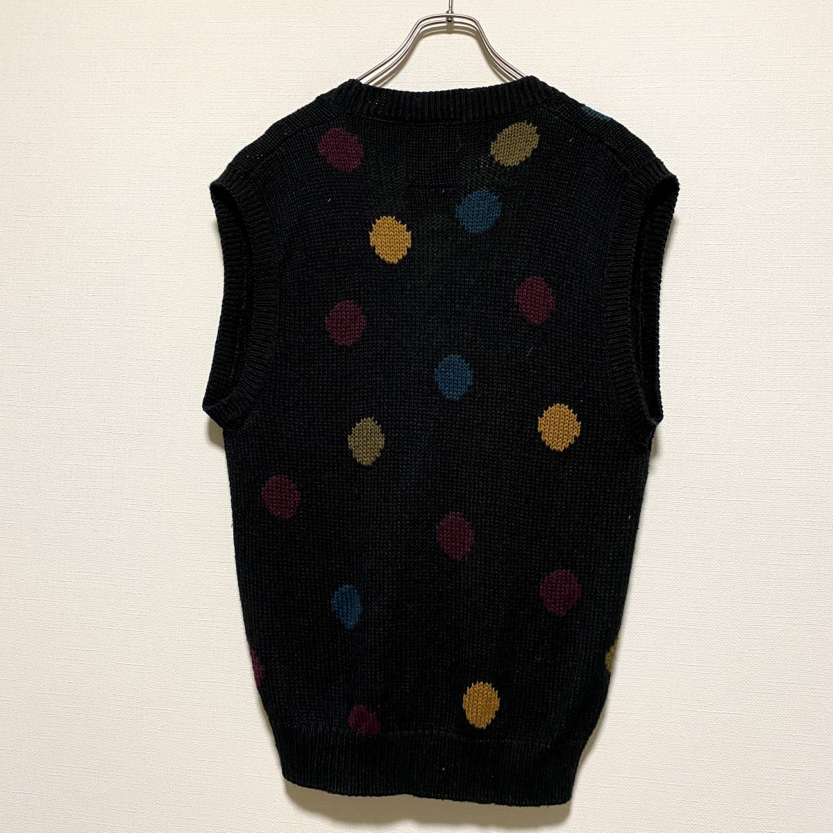 アメリカ古着 ニット セーター ベスト カーディガン 水玉 ドット ブラック ヴィンテージ 【P712】