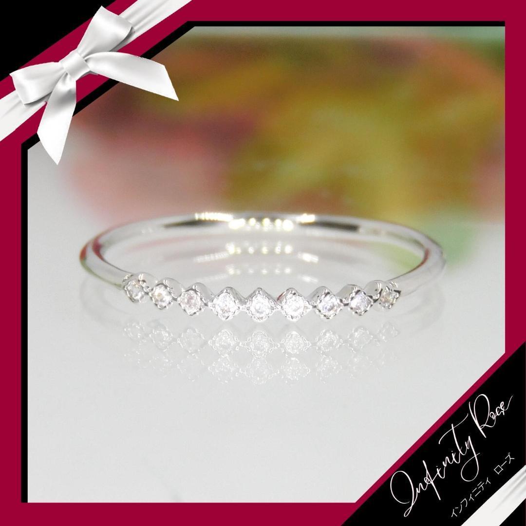 (R027S)21号 シルバー極細の可憐で清楚なまん丸リング 爪留め仕様