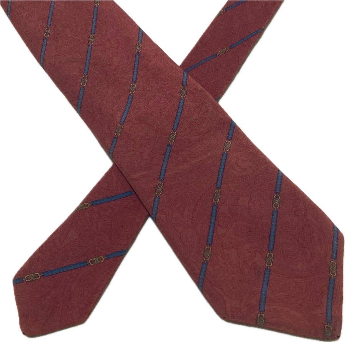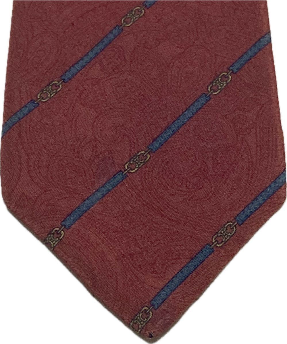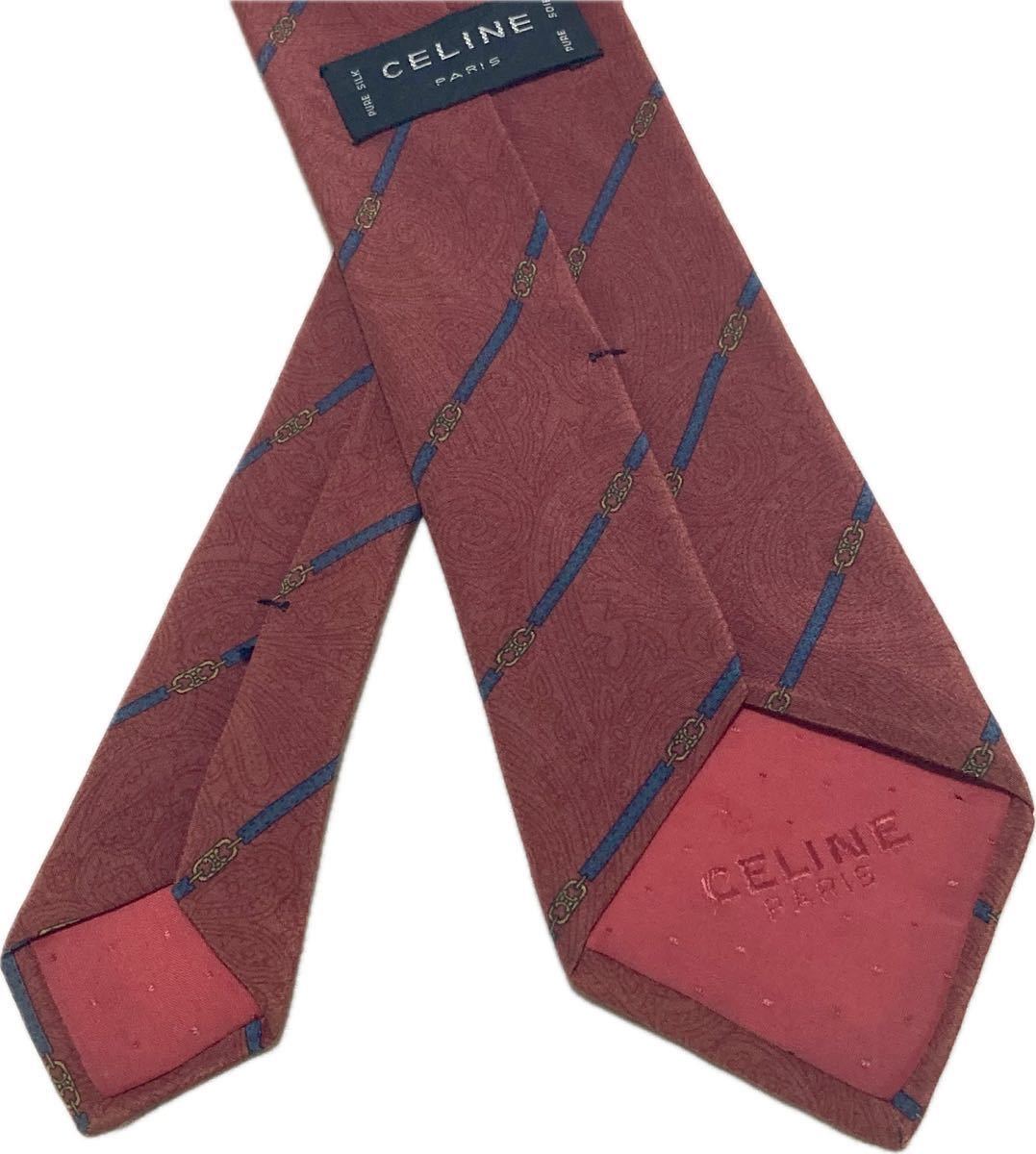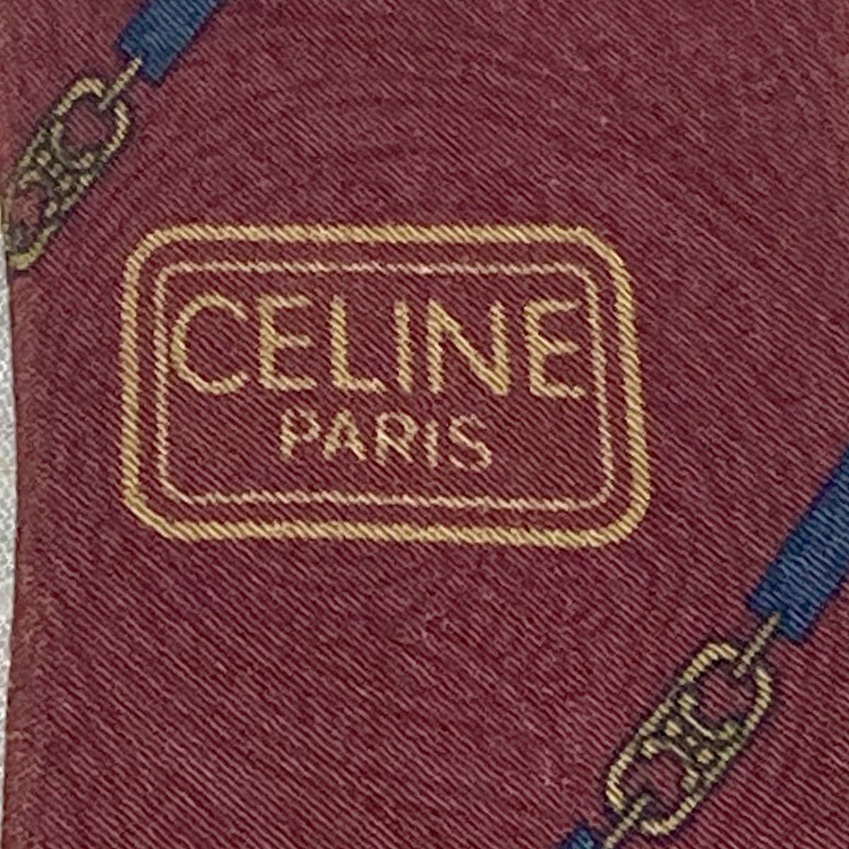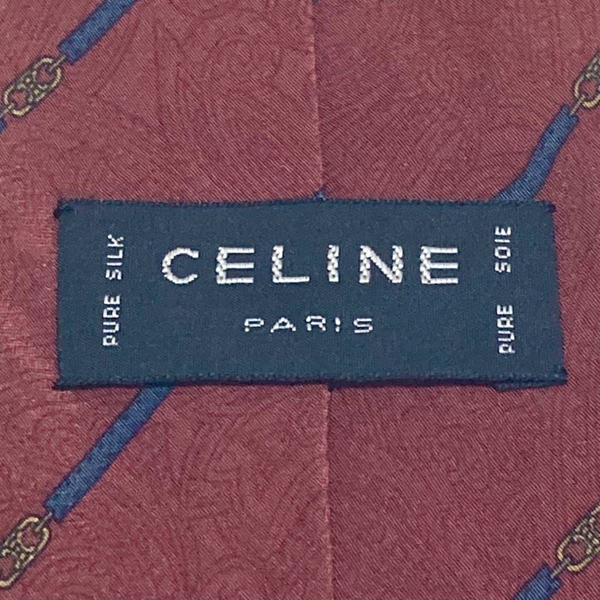 ★セリーヌシルクプリントネクタイ★マカダム金具ベルトストライプ★エンジ