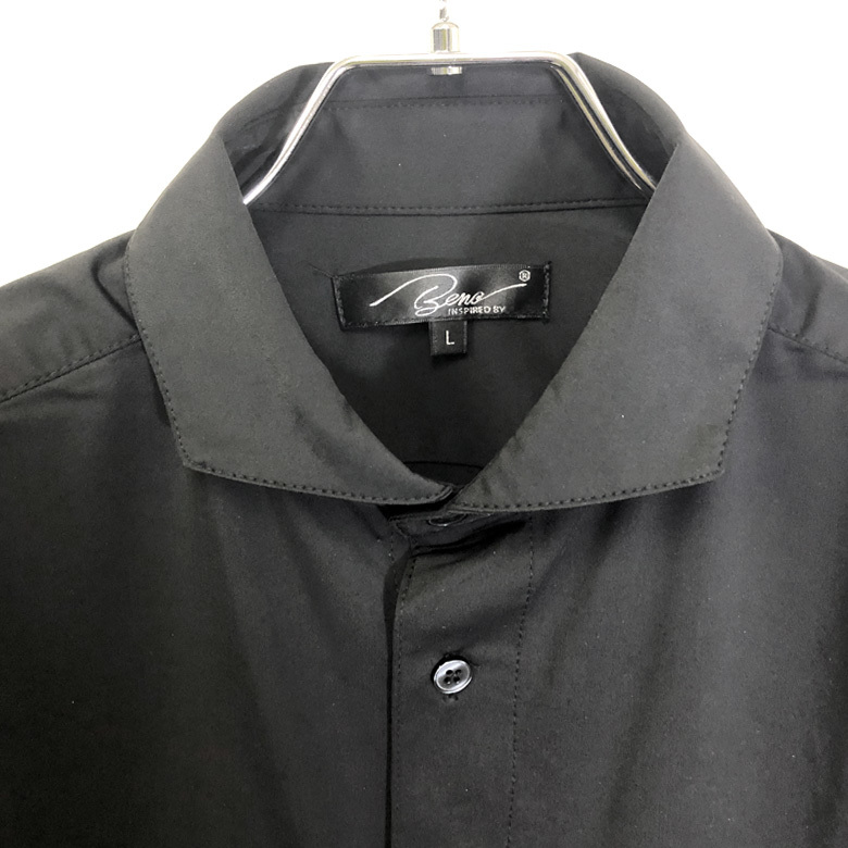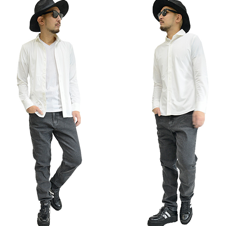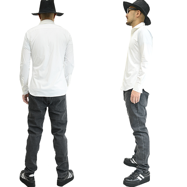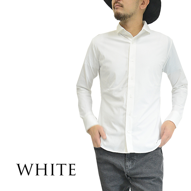 スーパーストレッチ長袖シャツ メンズ ラインストーン ロゴ ホリゾンタルカラー 0163n133 新品ホワイトXL