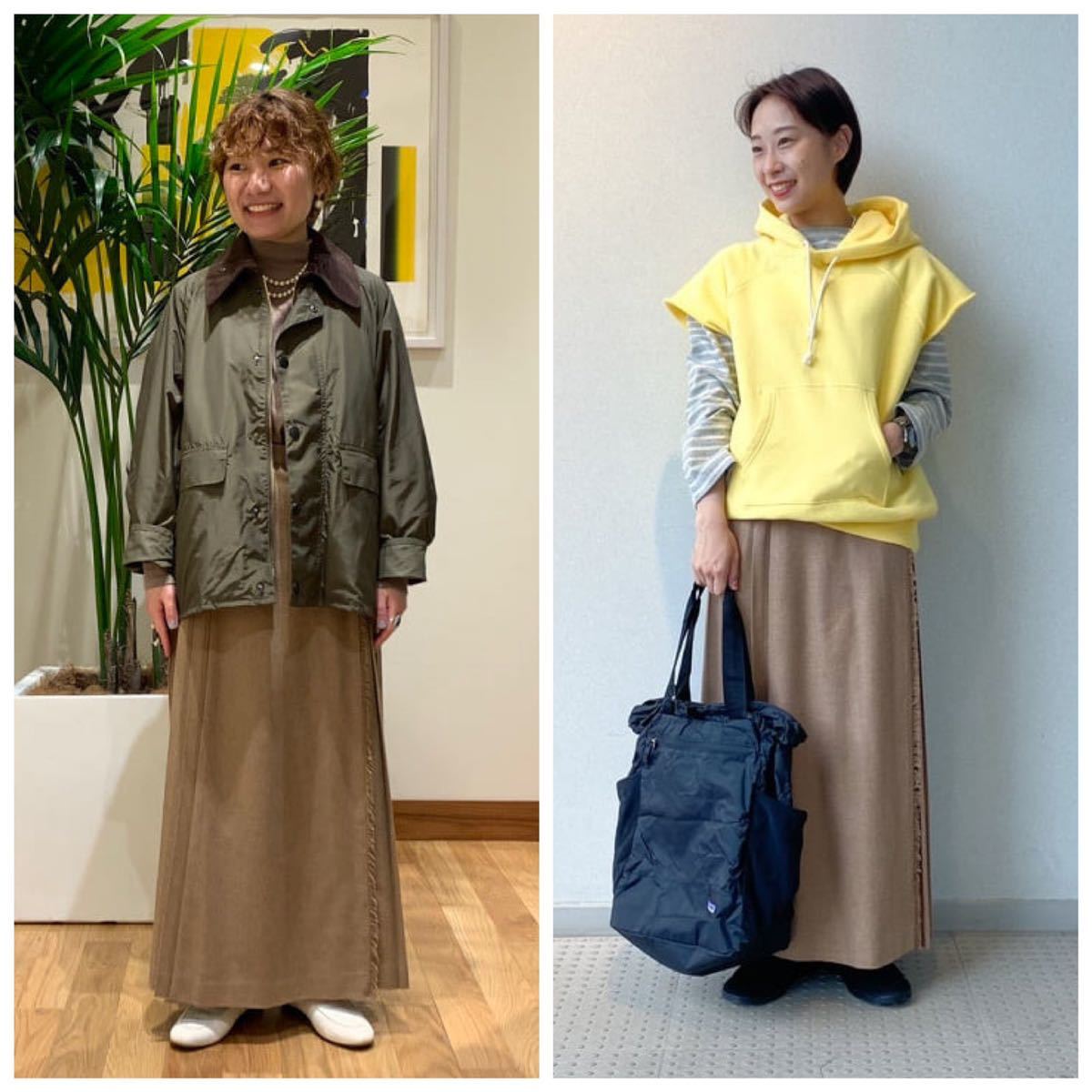 秋冬のスタイリングに欠かせないキルトスカートが、マキシ丈で登場です。