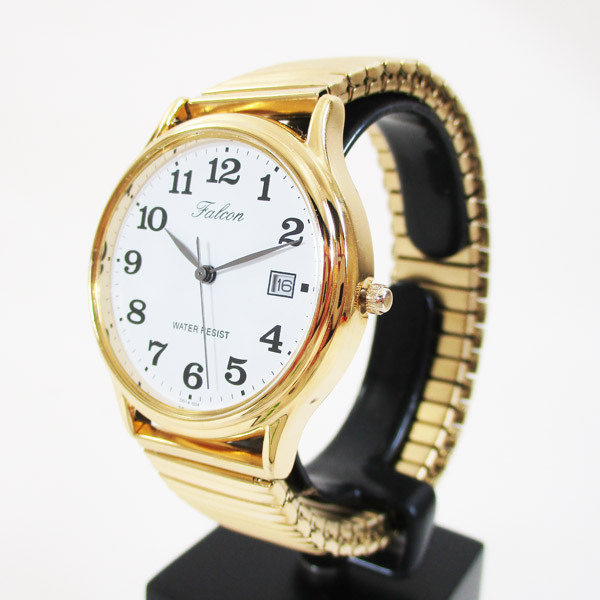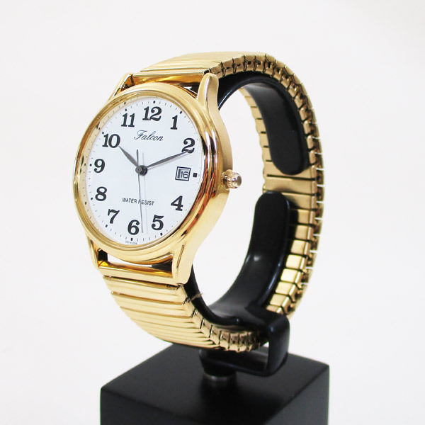 送料無料メール便 シチズン 腕時計 カレンダー付 蛇腹ベルト 日本製ムーブメント 5気圧防水 ゴールド 紳士/メンズ D014-004/3720