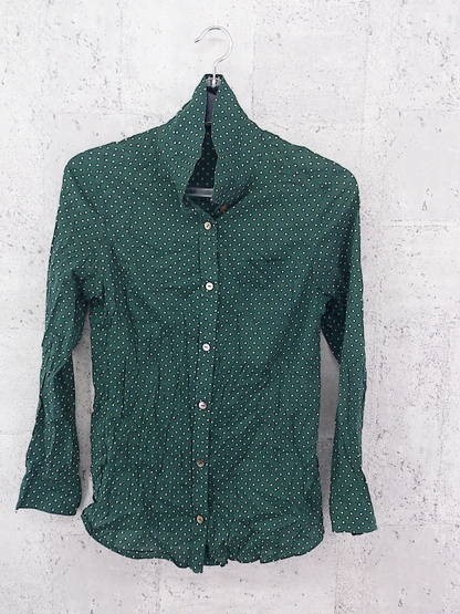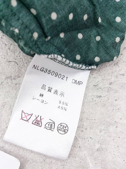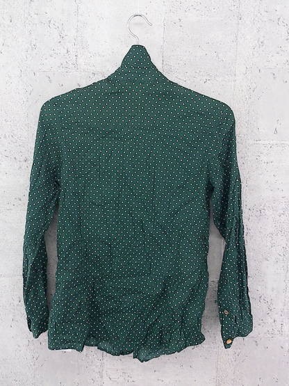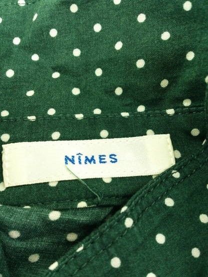 ◇ NIMES ニーム ドット 水玉 長袖 シャツ ブラウス グリーン アイボリー系 レディース