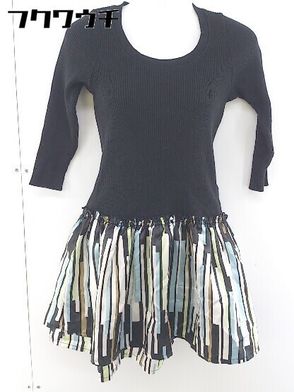 ◇ NATURAL BEAUTY BASIC ナチュラルビューティーベーシック 切替 七分袖 ミニ ワンピース サイズM ブラック レディース