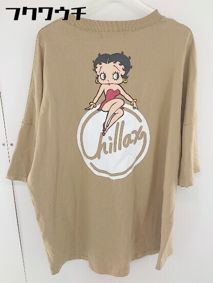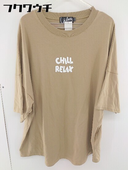◇ CHILLAX チラックス バックプリント  七分袖 Tシャツ カットソー サイズM ベージュ ホワイト レディース