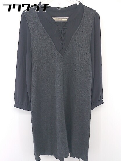 ◇ Another Edition アナザーエディション シフォン 切替 ニット 八分袖 ミニ ワンピース ブラック系 レディース