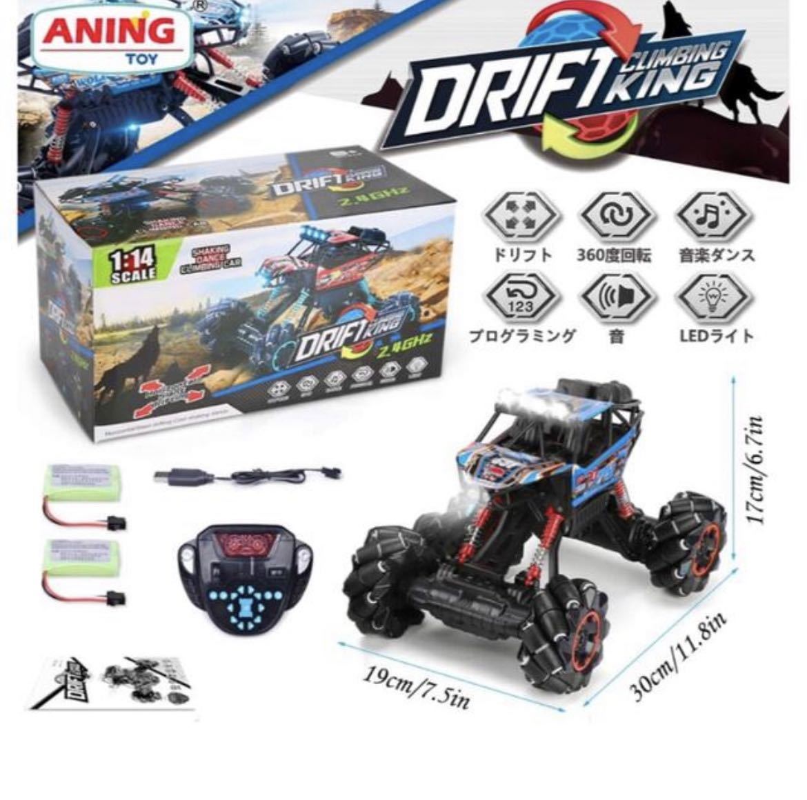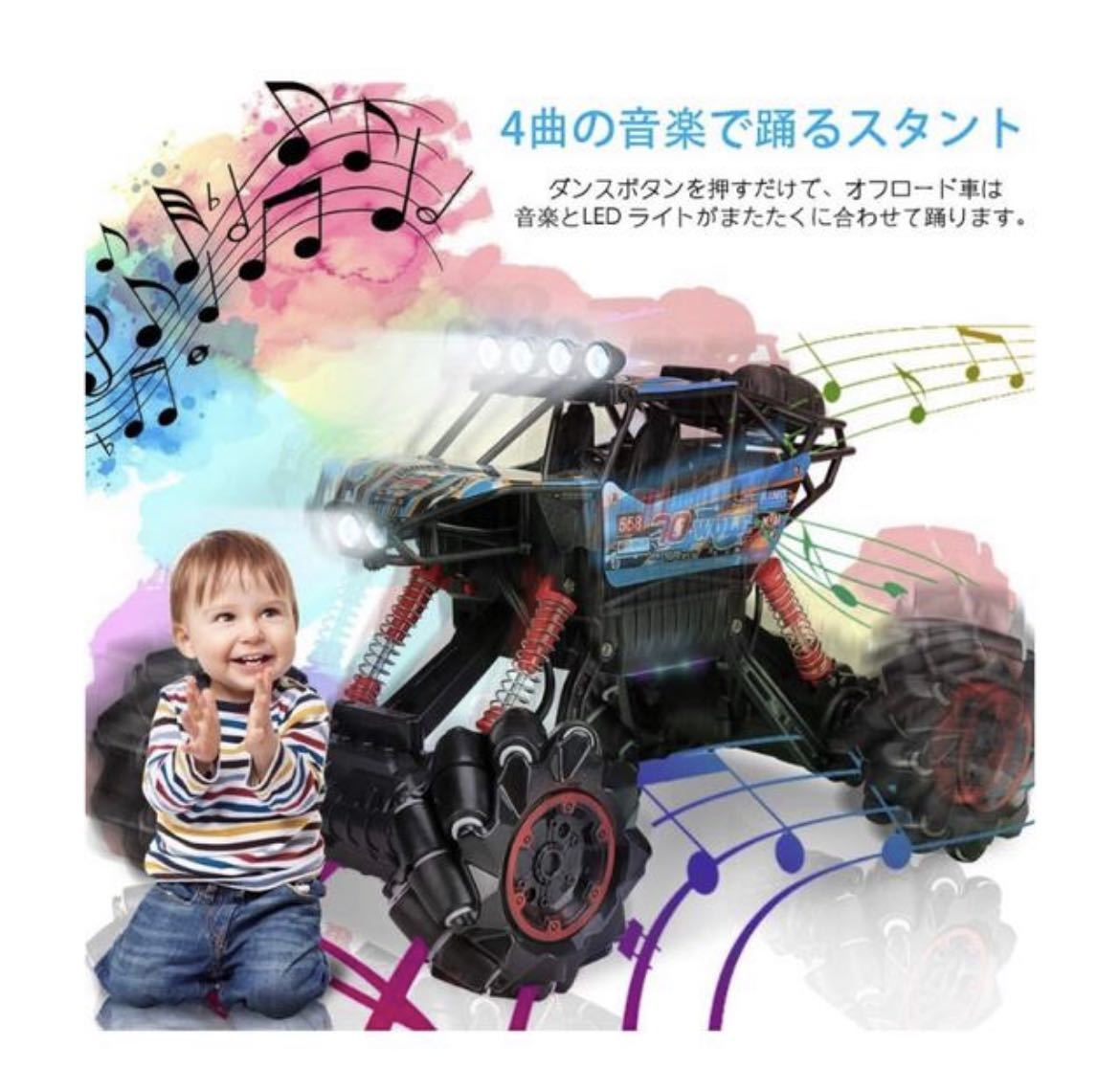 【2.4GHz無線・7つの主要機能】:2.4GHzの無線制御技術を採用し、強力な抗干渉機能を確保します。複数台が同時に走行は可能、互いに影響しません。他人と一緒に同地同時に運動競技可能です。4WD搭載の4つの強力なモータにより、短時間で最大速度15KM / H(9.3MPH)に達することができて、遠隔操作距離は最大80mです。前進/後退、左折/右折、全方位ドリフト、360度回転、音楽ダンス、明るいLEDライト、プログラミングデモンストレーションの様々な機能搭載します。