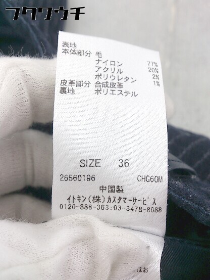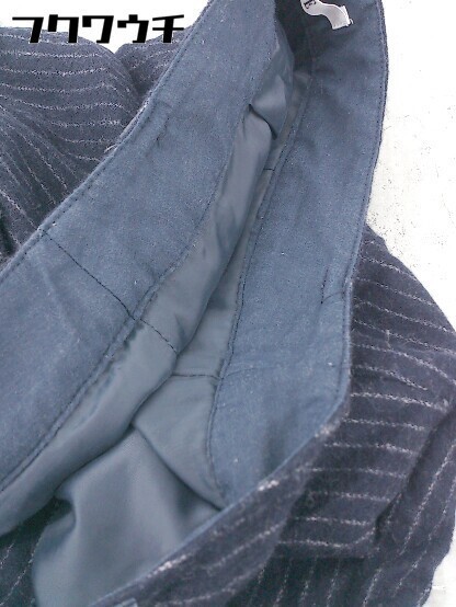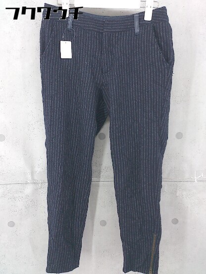 ◇ ELLE エル 裾ジップ ストライプ ウール パンツ サイズ36 ネイビー レディース