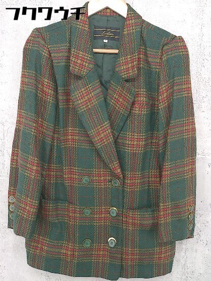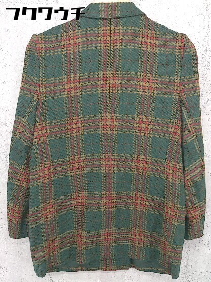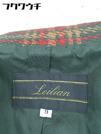 ◇ Leilian レリアン ダブル チェック 長袖 テーラードジャケット サイズ9 グリーン ベージュ レッド レディース