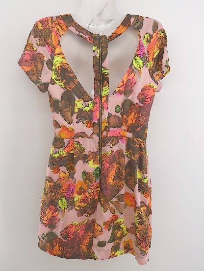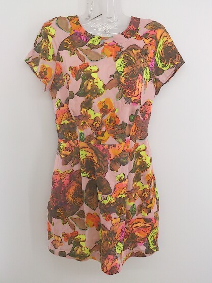 ◇ TOPSHOP トップショップ 総柄 フレンチスリーブ ミニ ワンピース サイズEUR38 US6 UK10 ピンク系 マルチ レディース P