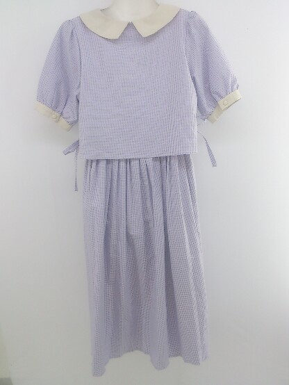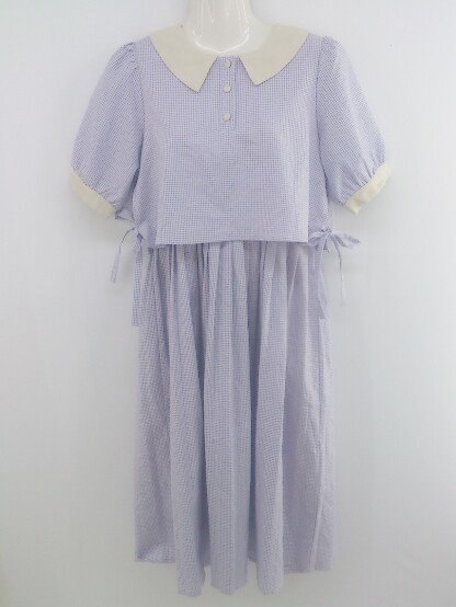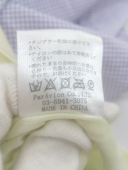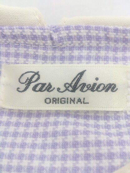 ◇ Par Avion パラビオン ギンガムチェック 半袖 膝下丈 ワンピース サイズ ONE パープル ホワイト レディース P