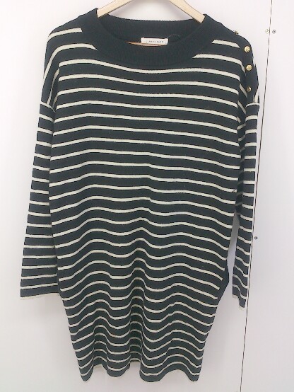◇ LOWRYS FARM ローリーズファーム ボーダー 長袖 ミニ ニット ワンピース サイズL ブラック ベージュ系 レディース
