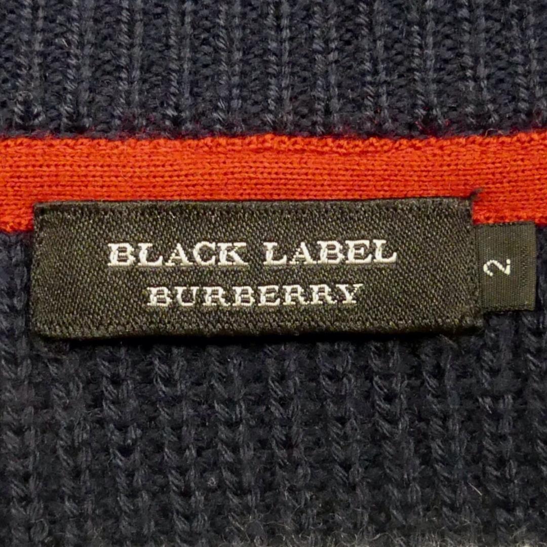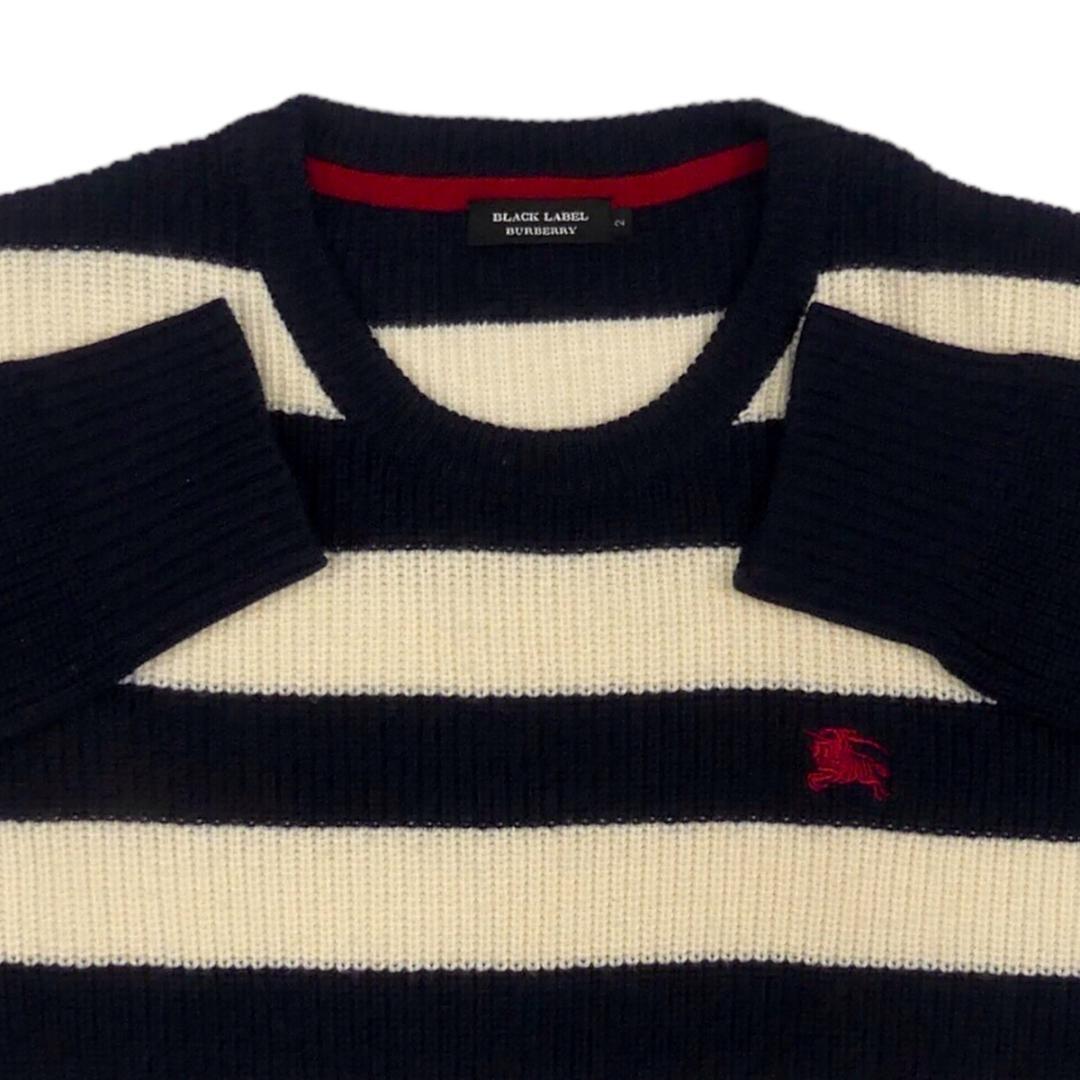即決★BURBERRY BLACK LABEL★メンズM 廃版 ニット セーター バーバリーブラックレーベル 2 紺 ウール ネイビー ボーダー 刺繍