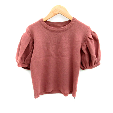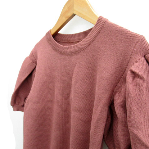 未使用品 グレイル GRL ニット カットソー 半袖 クルーネック 無地 パフスリーブ M ピンクブラウン /SY36 ■MO レディース