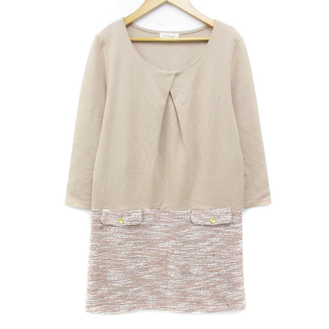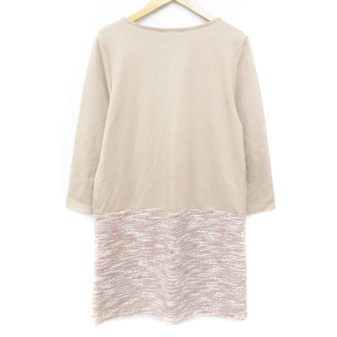 ロペピクニック ワンピース ミニ丈 長袖 ラウンドネック 切替 ツイード マルチカラー 38 ベージュ 白 ホワイト /FF25 レディース