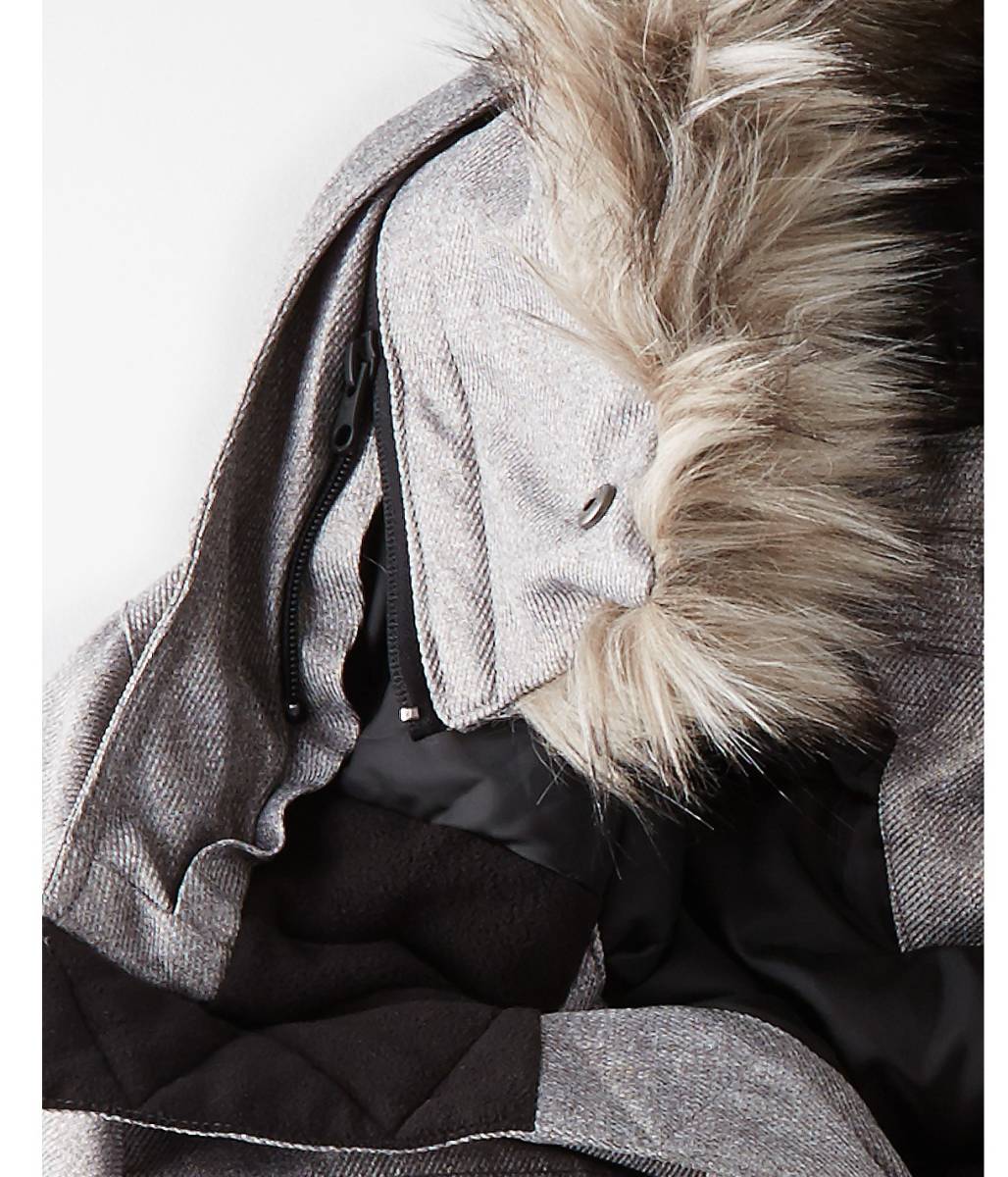 悪天候下でも、暖かく見た目もスマートでいられる最強アウター。フードには取り外しも可能なフェイクファーを備え、冷気から顔を守ります。腰ポケットはフラップ付きのポケットに、ハンドウォーマーポケットを重ね付け。さっと手が入れられ、重宝します。