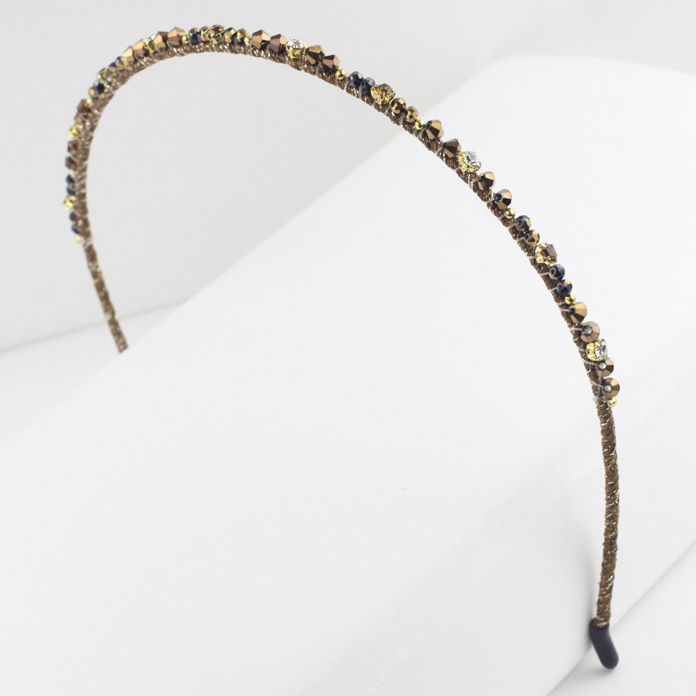 【ゆうパケット送料250円】カチューシャ/ラインストーン 異種小粒ビーズ カチューシャkc27☆ブラウン/髪飾り ヘアアクセサリー