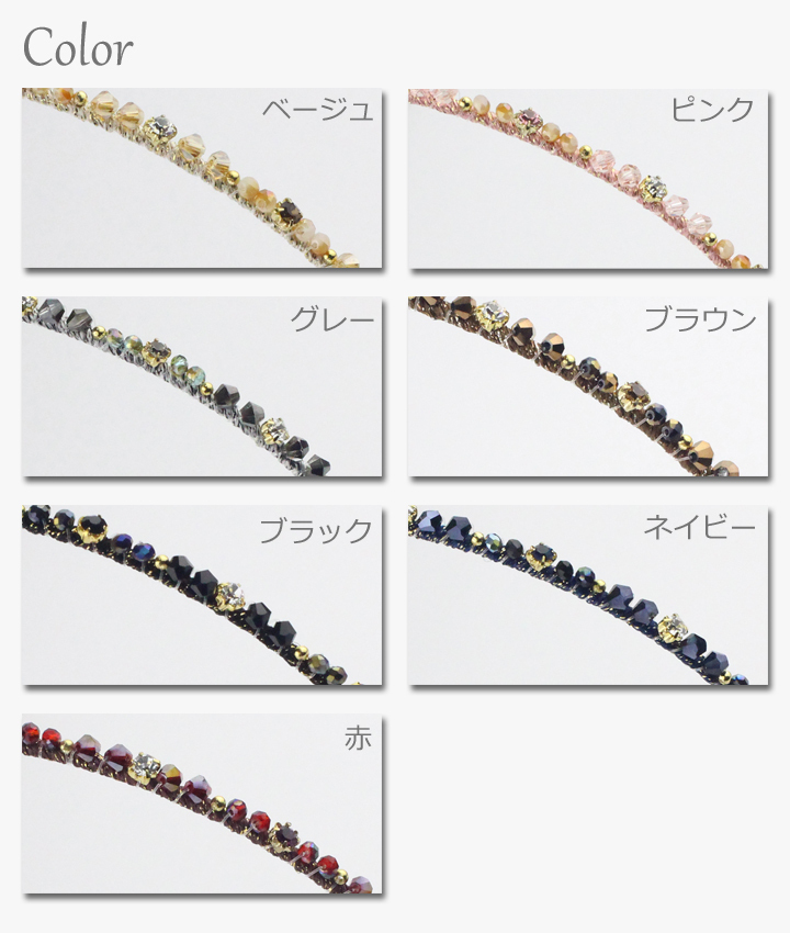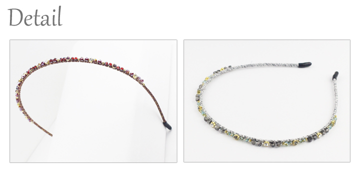 商品説明ラインストーンと異種ビーズのたっぷりのカチューシャ。