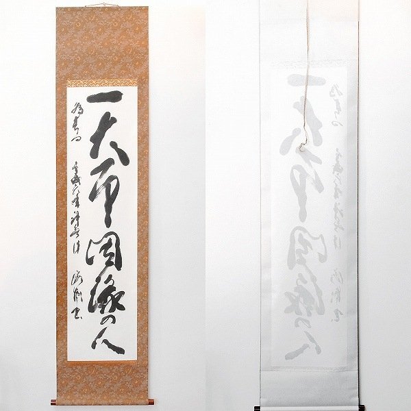 横:約510mm、縦:約1980mm、状態良好です。間山陵風(1927年、青森県生まれ)、水茎書道会創設者、青森県美術展覧会(県展)審査員。状態ランク:B