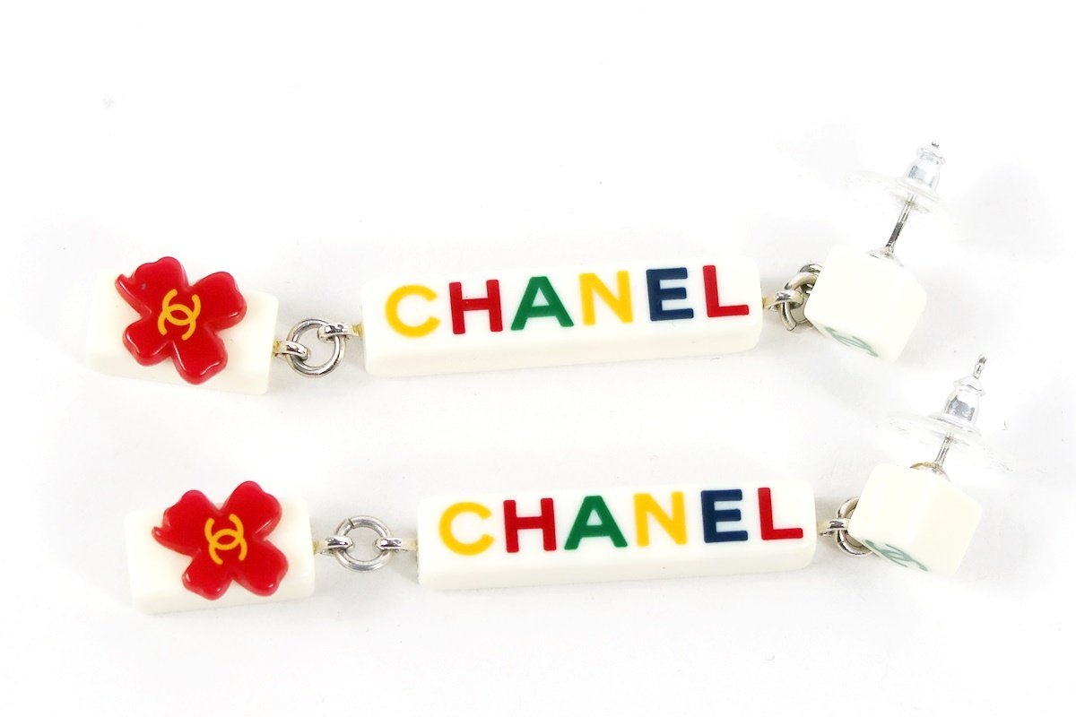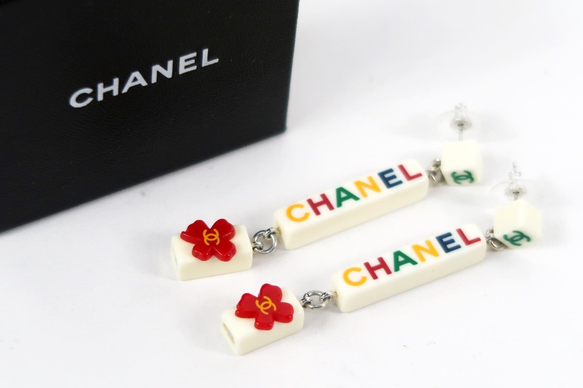 【超美品】CHANEL シャネル ココマーク スイング ピアス CHANELロゴ マルチカラー 04P刻印【PX79】 |