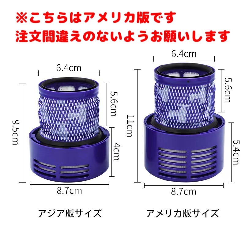 (A) ダイソン Dyson V10 アメリカ版 互換 交換用 掃除機フィルター V10 SV12 シリーズ用 洗濯可能 2個セット