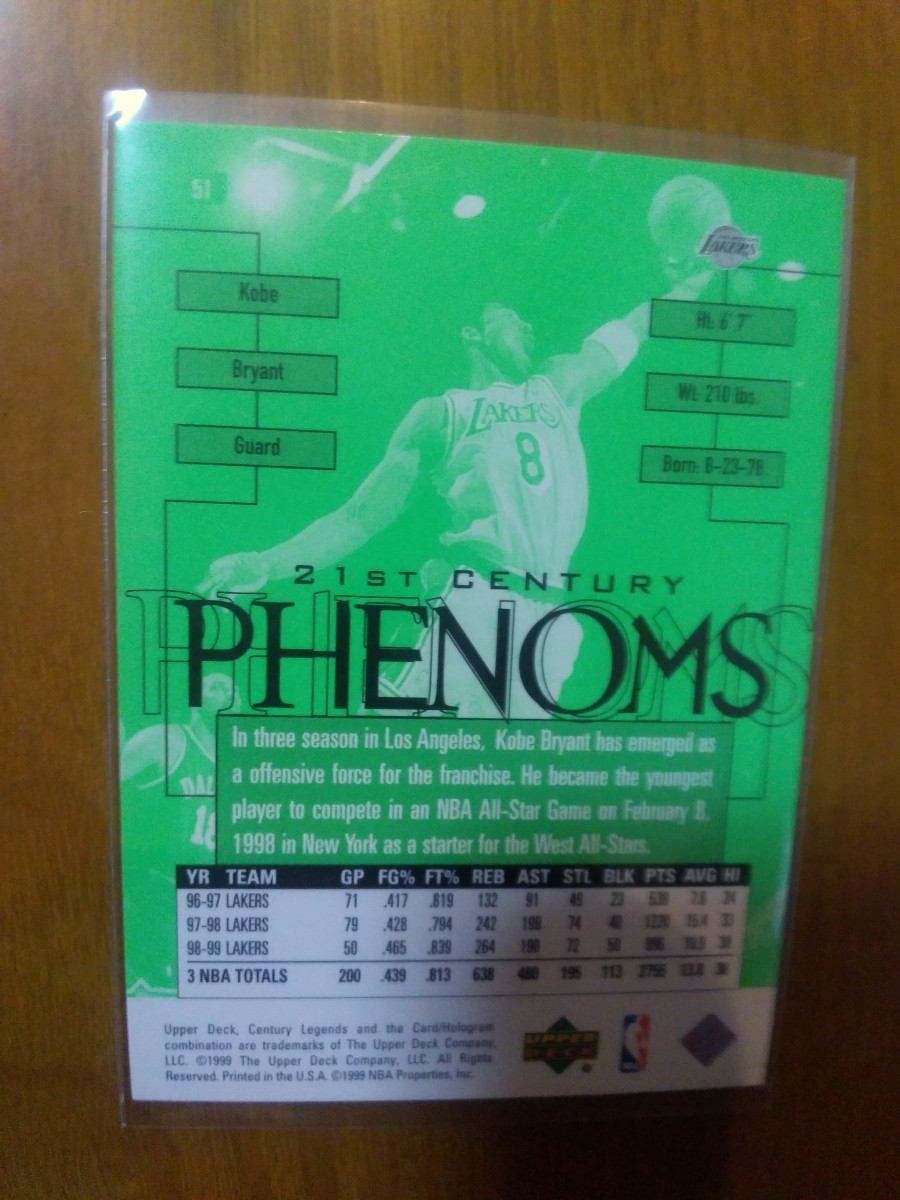 KOBE BRYANT コービーブライアント CENTURY LEGEND 1999 UPPER DECK #51