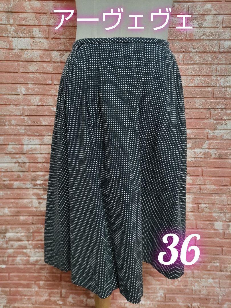 アーヴェヴェ ミッシェルクラン パリス ドット柄 プリーツスカート 黒 36