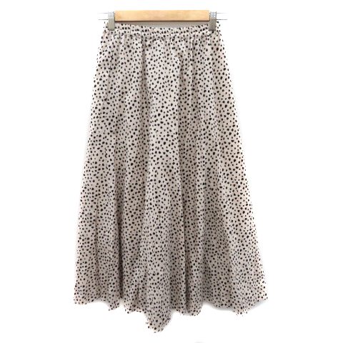 ロペピクニック ROPE Picnic フレアスカート ギャザースカート ロング丈 マキシ丈 ダルメシアン柄 38 黒 ブラック /YK29 レディース