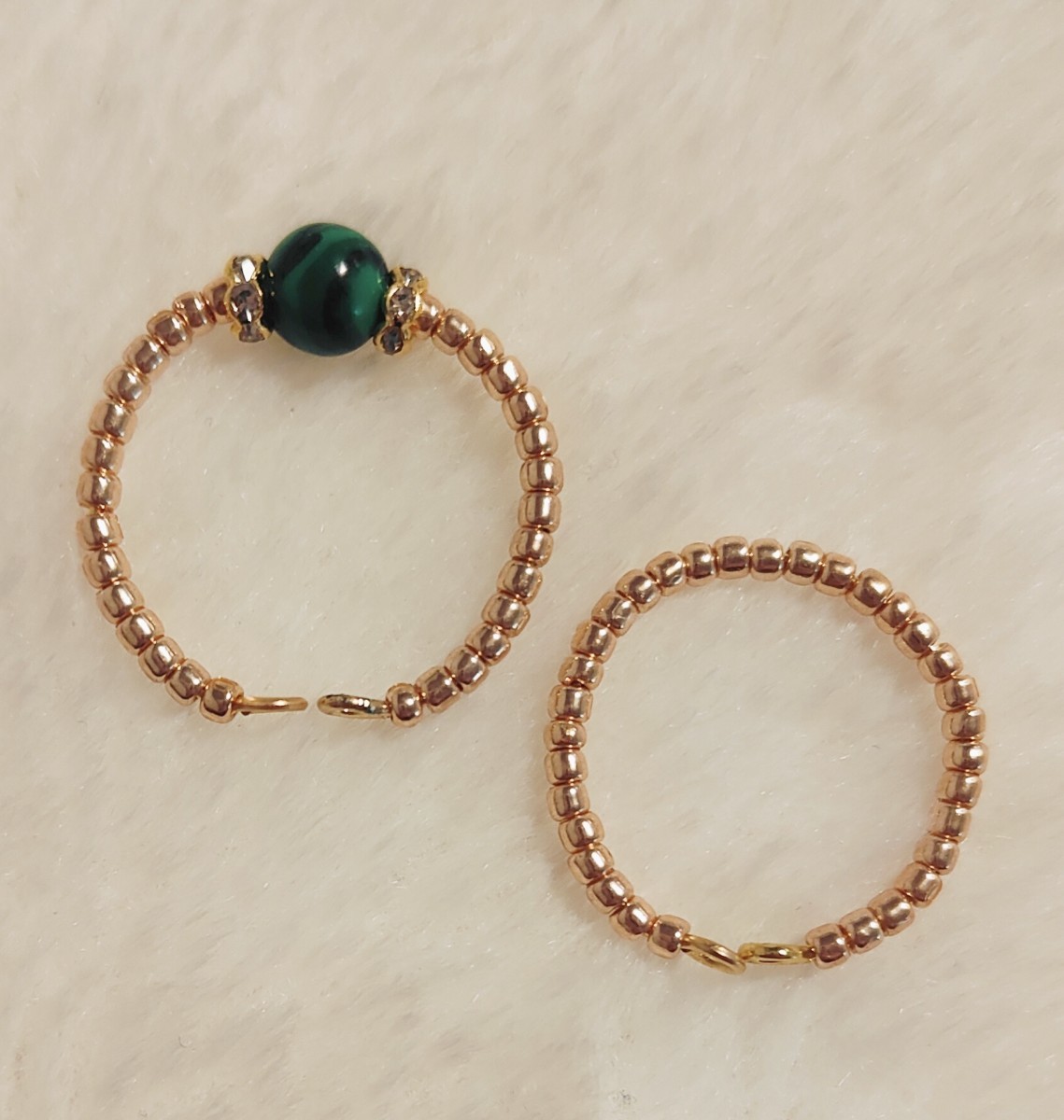◆パワーストーンにゴールドビーズとラインストーンのロンデルを組み合わせたリングと、ゴールドビーズのみのシンプルなリングの2本セットでございます。
