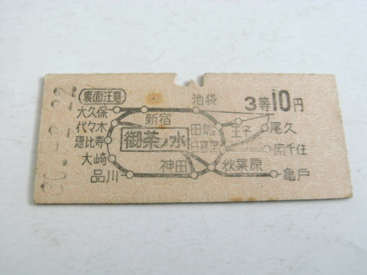 中央本線 御茶ノ水から3等10円 昭和30年2月22日 御茶ノ水駅発行 国鉄