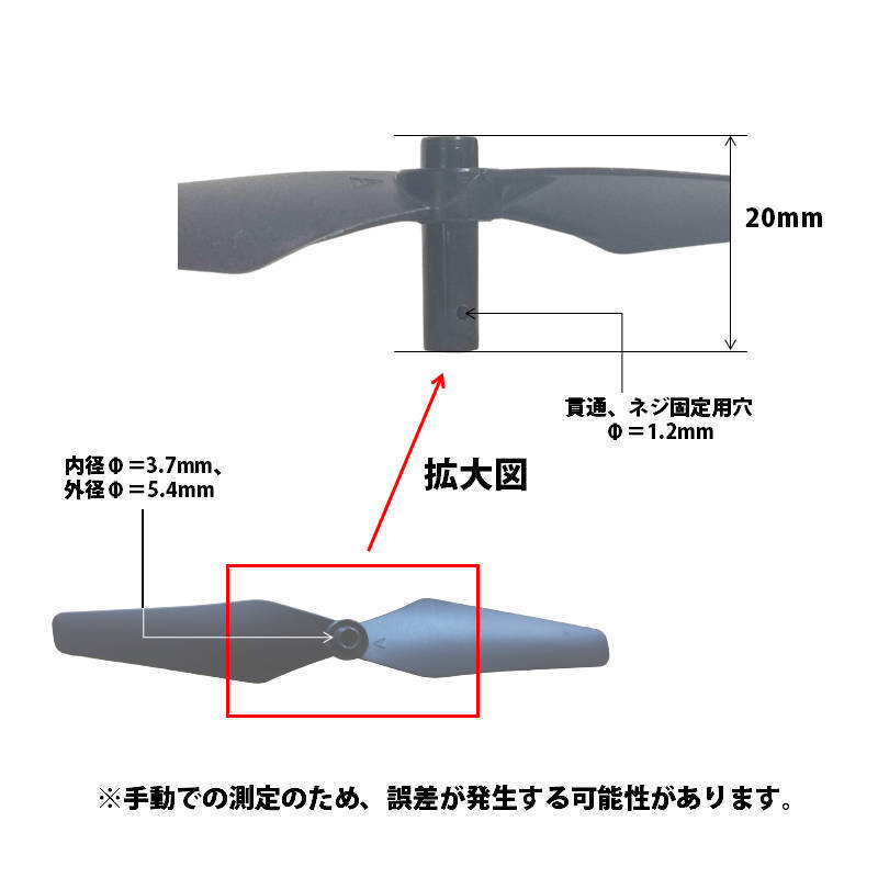 | 内容物:汎用プロペラ5セット。AABB合計20枚です。※寸法の詳細は商品図をご参考ください。※ご購入前に穴直径をご確認ください。 |