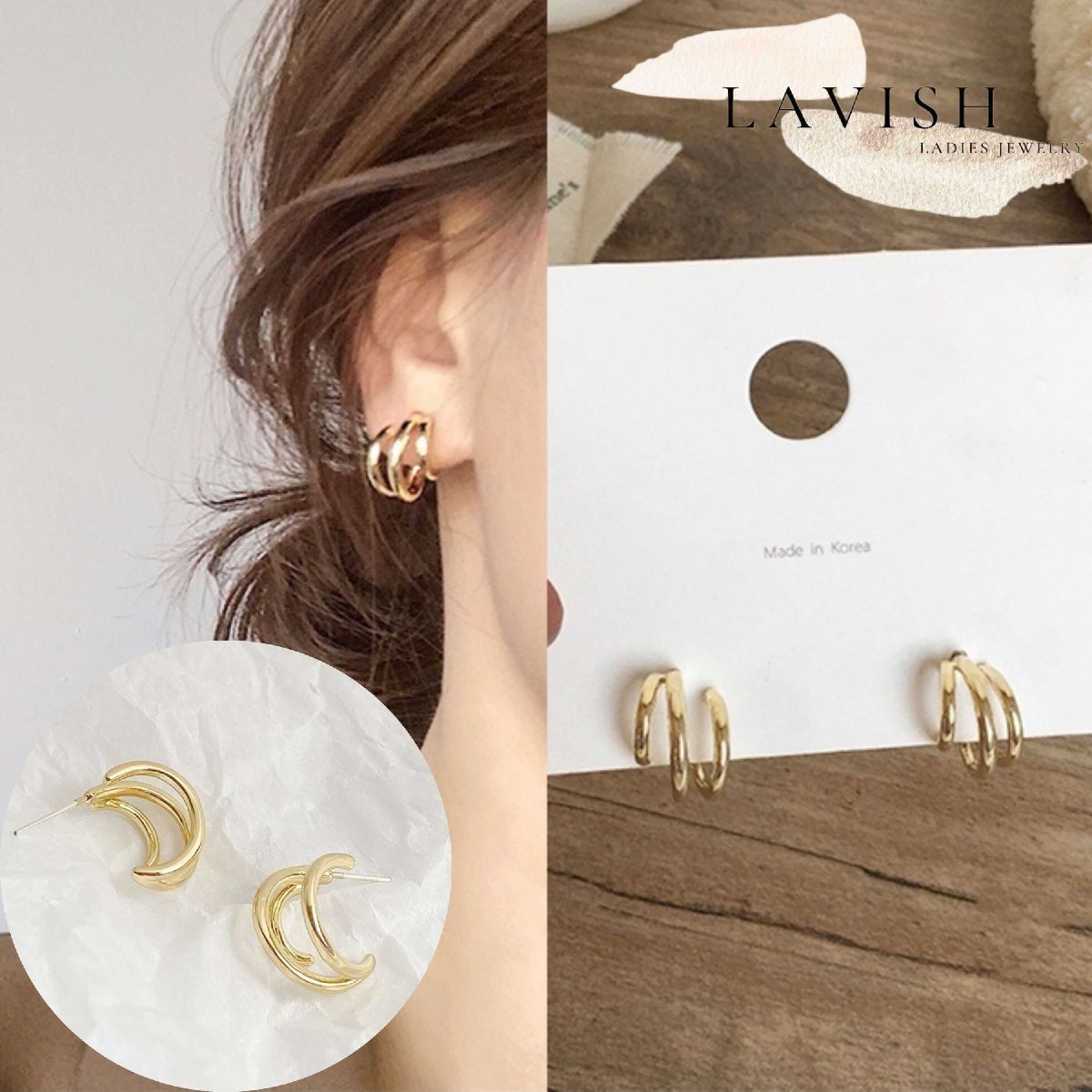 ピアス アクセサリー レディース 両耳 韓国 人気3連デザインピアス P-08 シルバー925