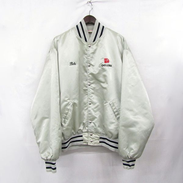 USA製 サイズ XXL Birdie スタジアム ジャンパー ナイロン ジャケット スタジャン グレ ー企業 刺繍 ロゴ 古着 ビンテージ 3MA1407