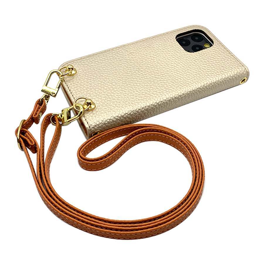Galaxy A20 SC-02M SCV46 スマホショルダー(手帳シャンパン×ストラップ:アプリコット)カバー 手帳 くすみカラー