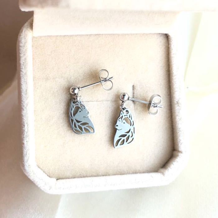 シンプルなシルバーボールにウルフモチーフがついた、シンプルながら雰囲気のあるピアスです。ユニセックスデザインで、どんなファッションにもよく合うお品です。