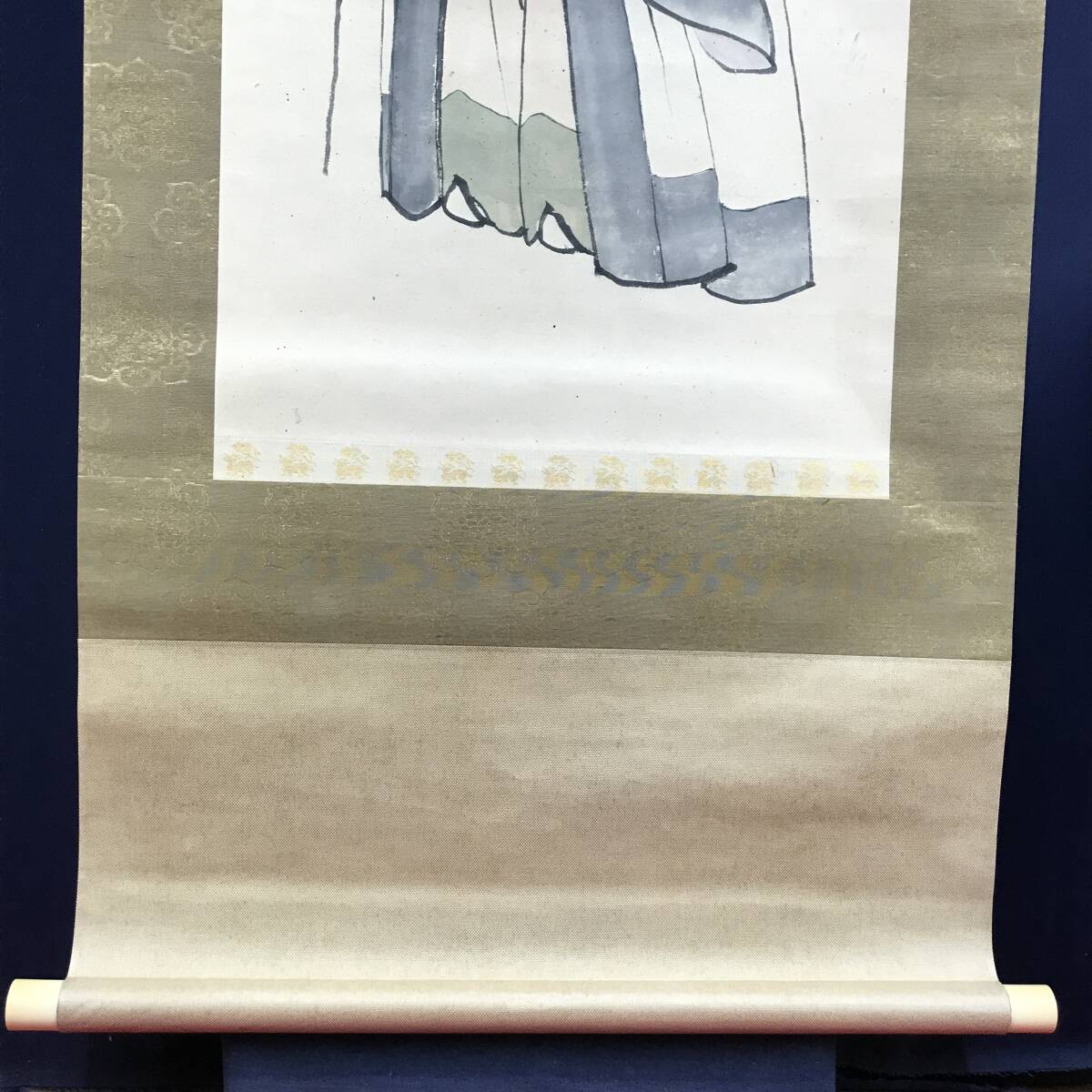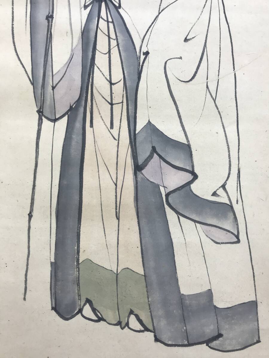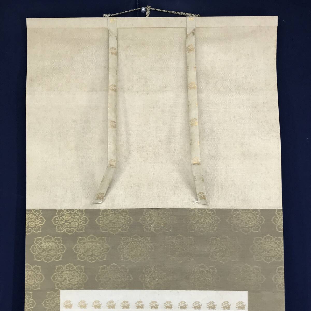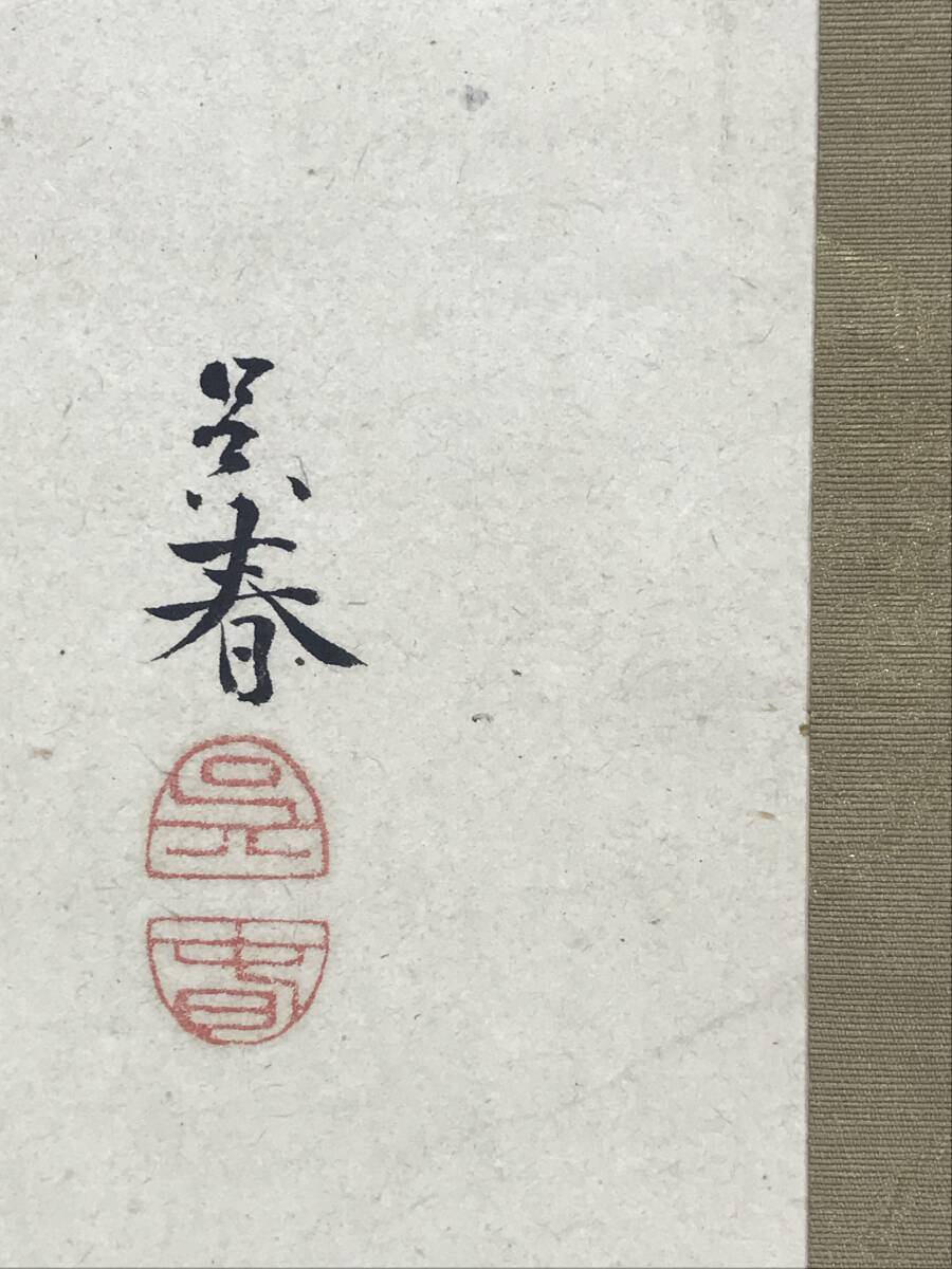 【作品状態】 本紙は紙本肉筆です。本紙は薄汚れ、多少の汚れシミあります。表装は絹表装で、天地に多数の糊シミあります。軸先は牙です。